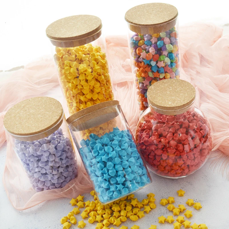 100 pcs Handmade Product Origami Stars Lucky Colorful Wishing Star Decoration Folding Paper Stars Arts Crafting Valentine Gift