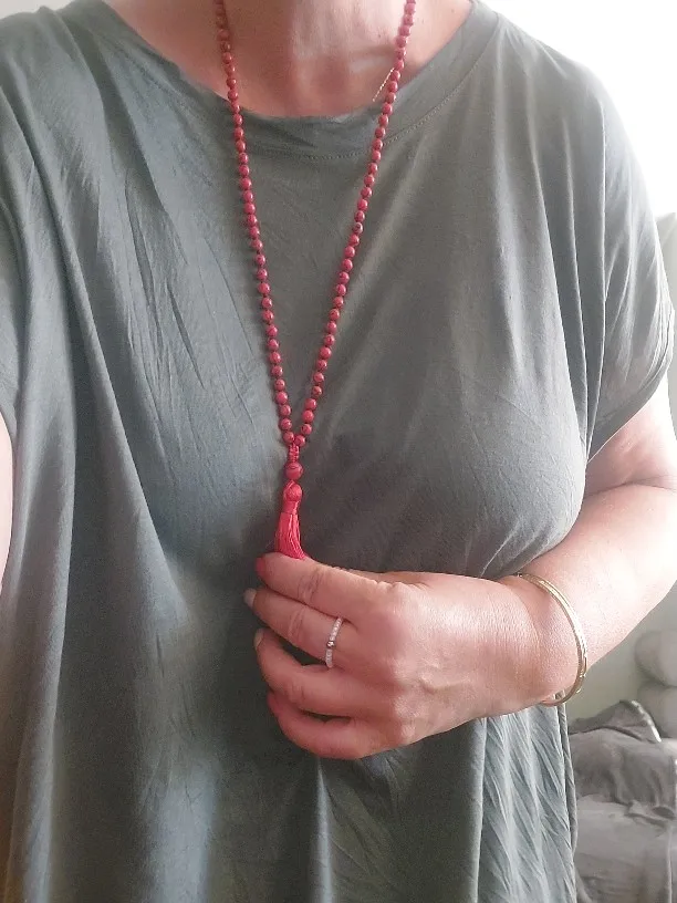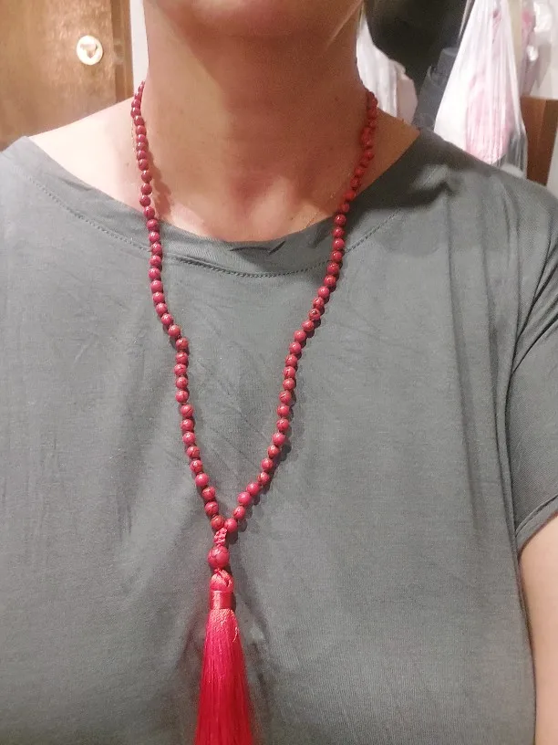 108 Mala Prayer Necklace 6mm Lucky Red Natural Stone Beaded Tassel Ethnic Necklace Women Men Meditation Yoga Spirit Jewelry Gift