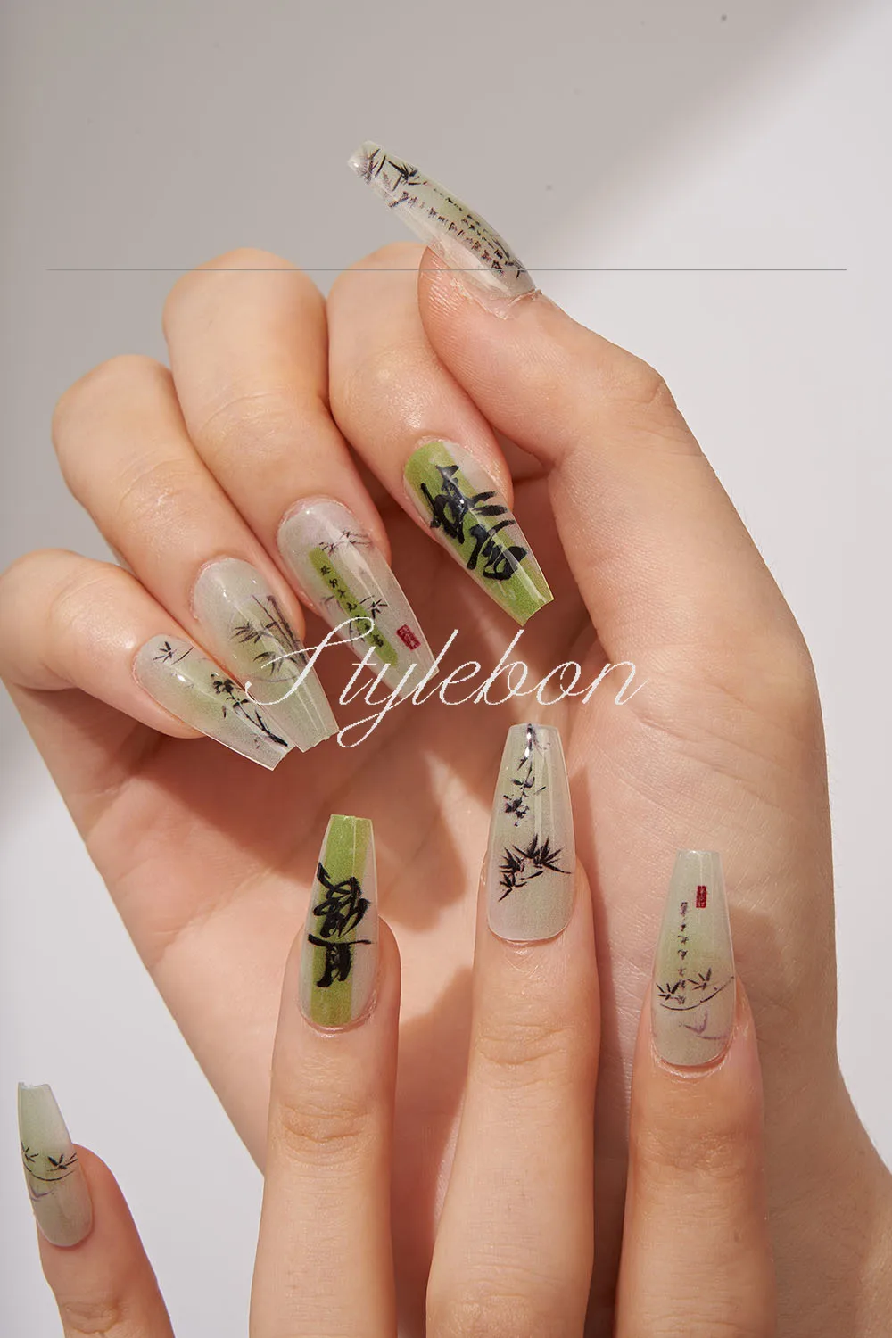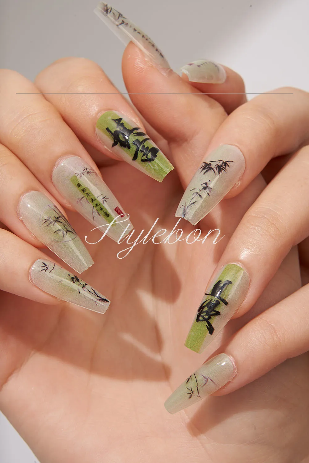 2. The delicate bamboo pattern on the nails symbolizes tenacity and integrity in Chinese culture.