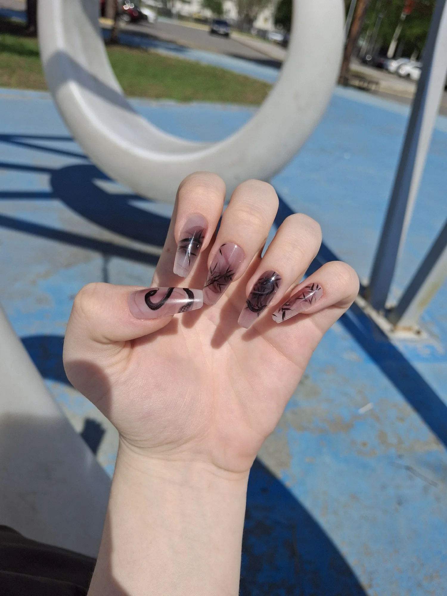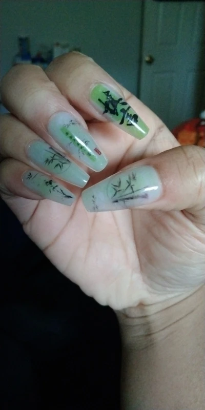 2. The delicate bamboo pattern on the nails symbolizes tenacity and integrity in Chinese culture.