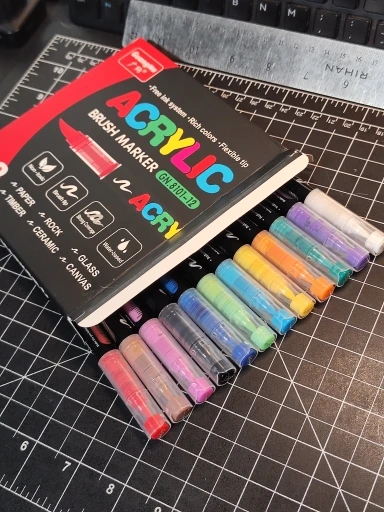 Some of the best acrylic pens I ever purchased. Thin tip and dry fast on any surface. I use them for my die-cast.