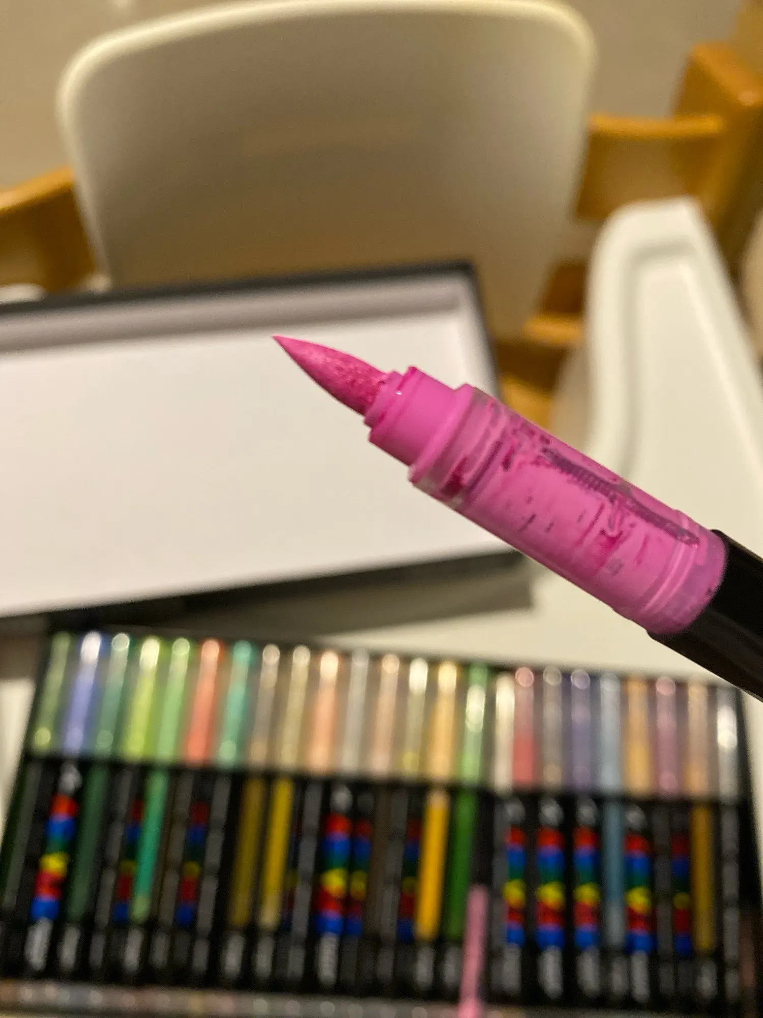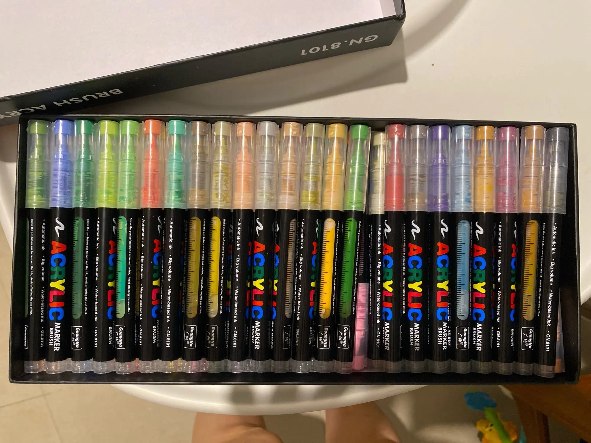 amazing acrylic markers, perfect to make flowers , lines geometric shapes, the brush is ideal.