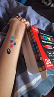 These are just great! Vivid colors, huge selection. Paints on wood and paper and so fun to use, does a stroke just like a brush
