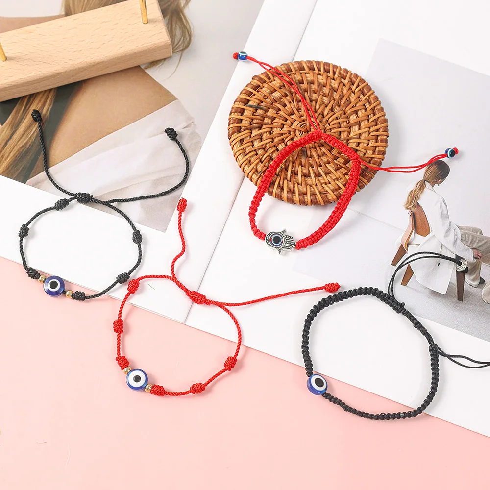 12PCS Blue Evil Eye Red Bracelet Women Men 7 Knot Lucky Handmade Braided String Adjustable Friendship Couple Bracelet Jewelry