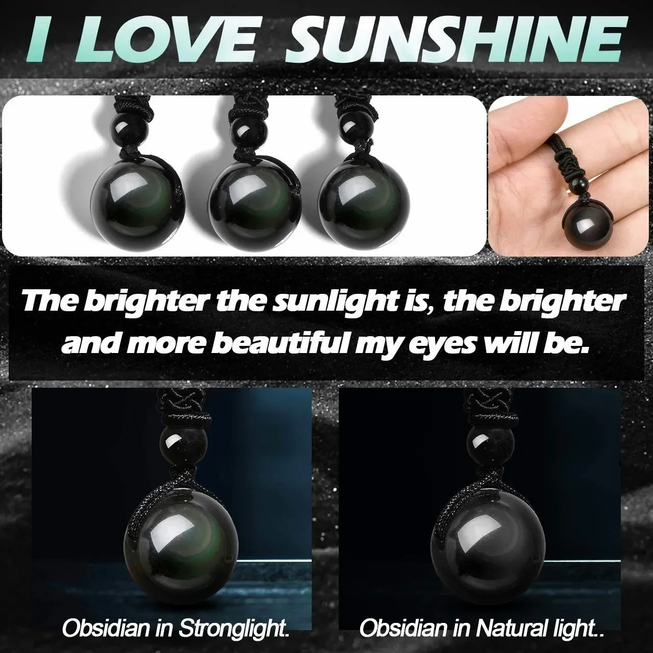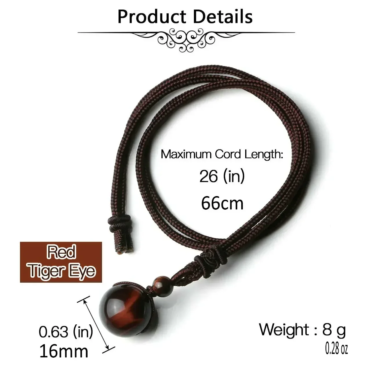 8 reviews for 16 Mm Black Obsidian Tiger Eyes Amethyst Stone Women Men Necklaces with Adjustable Braided Rope Cords Natural Crystal Pendant Ne