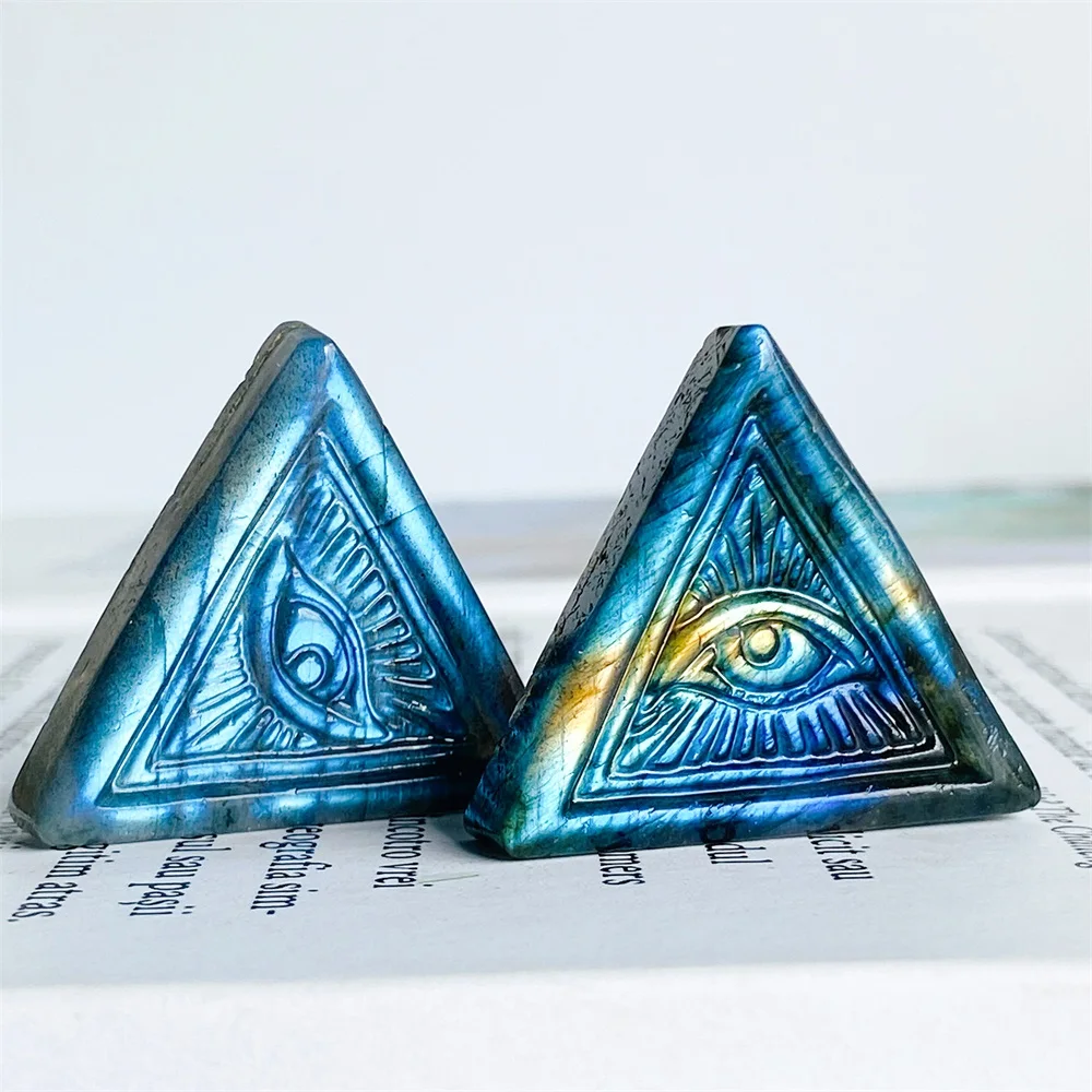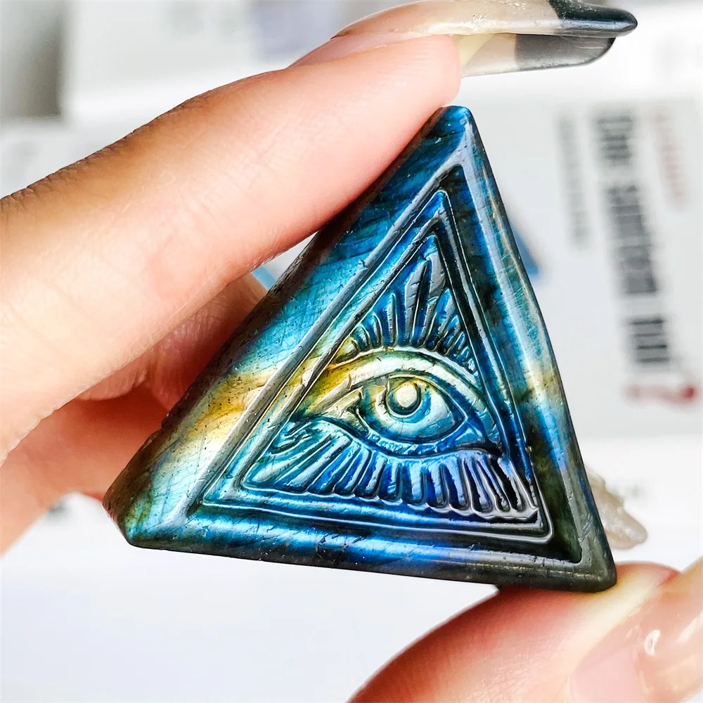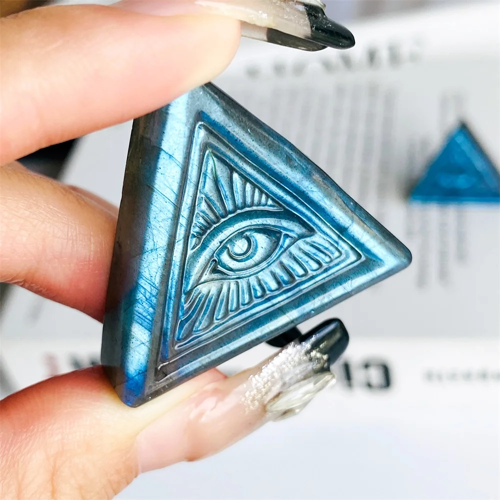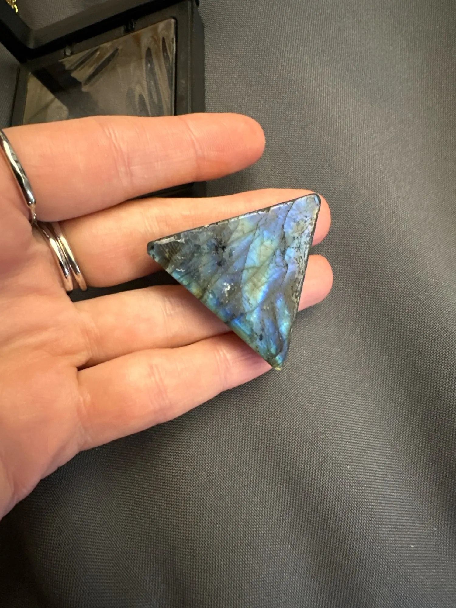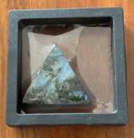 The item arrived on time and as described. There is some very nice labradorite patterning on the carving.