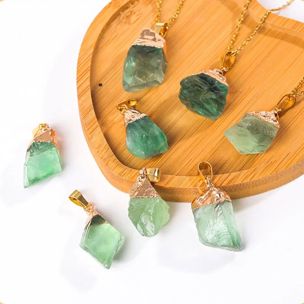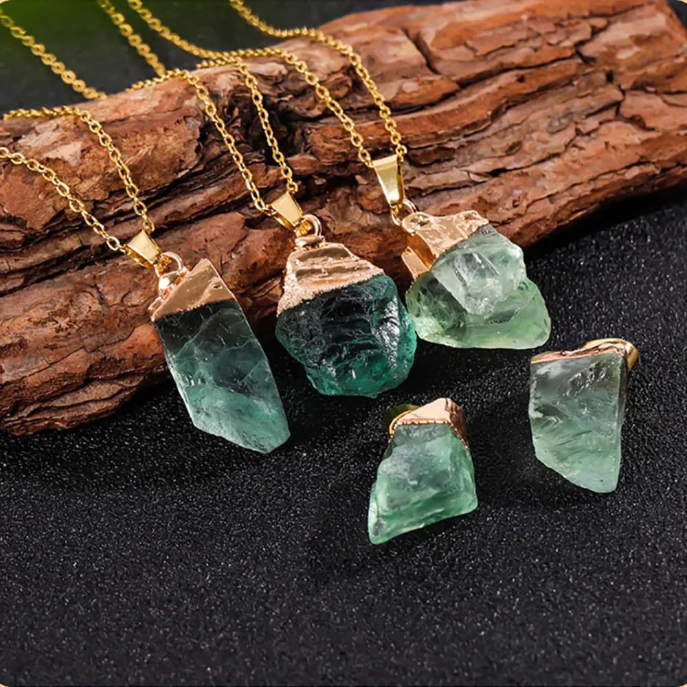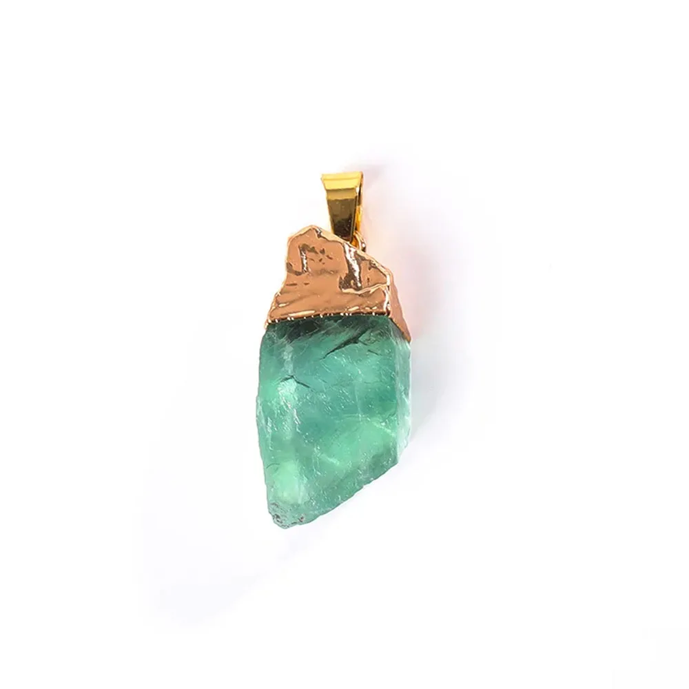 Green Flourite Gem Stone Crystal Pendant Necklace Healing Gemstone