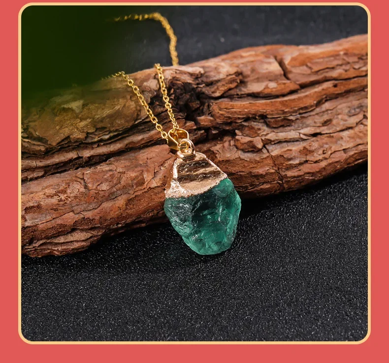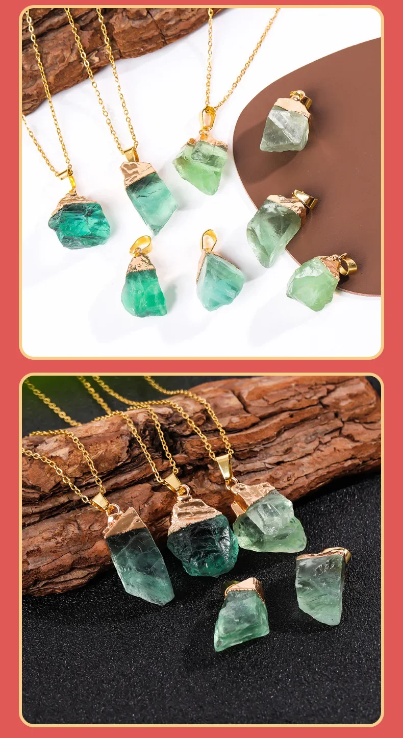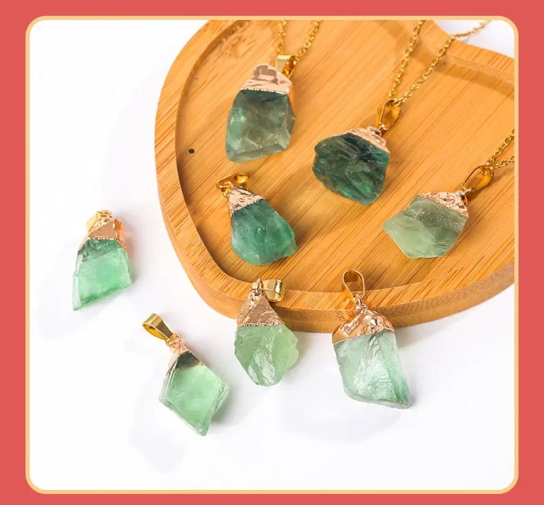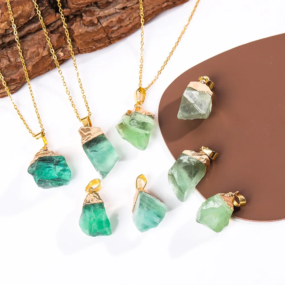 Green Flourite Gem Stone Crystal Pendant Necklace Healing Gemstone