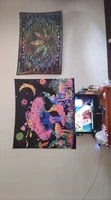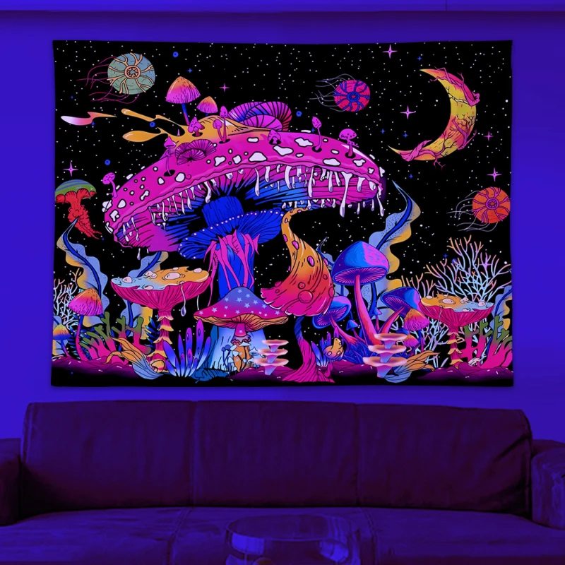 1pcFluorescent colored mushroom tapestry, ultraviolet black light natural plant forest moon flower mysterious night sky tapestry