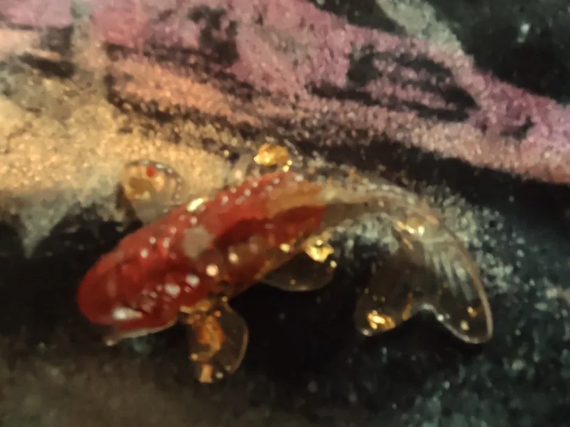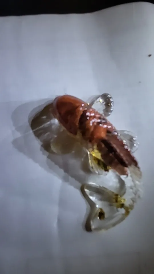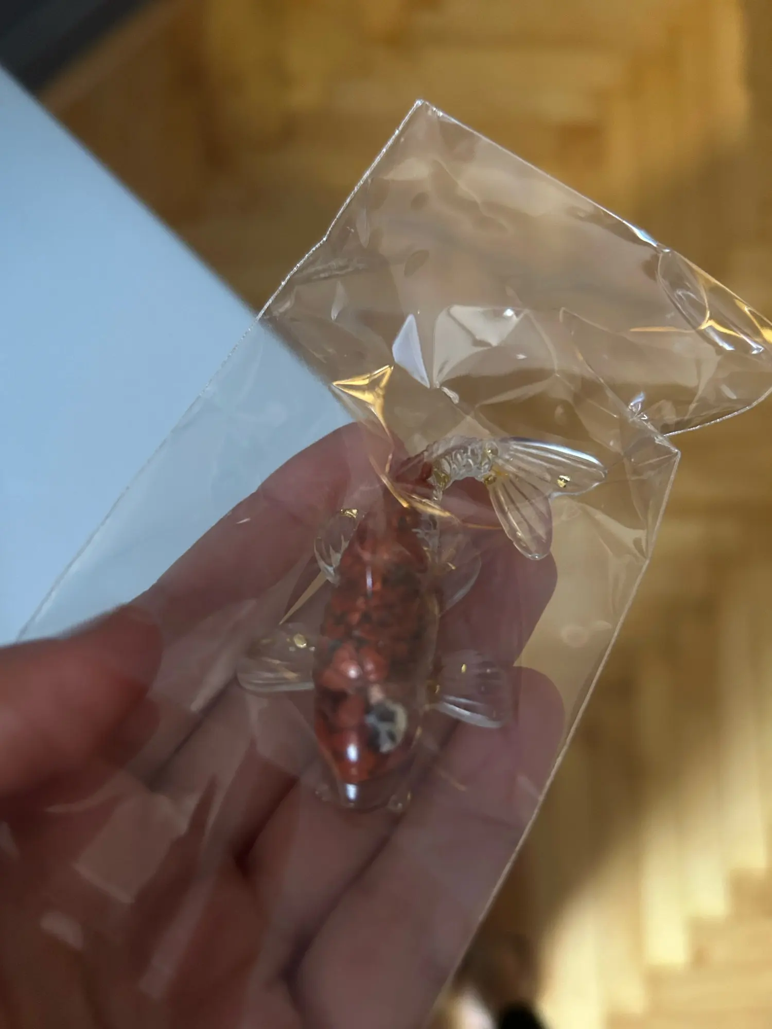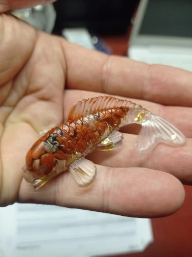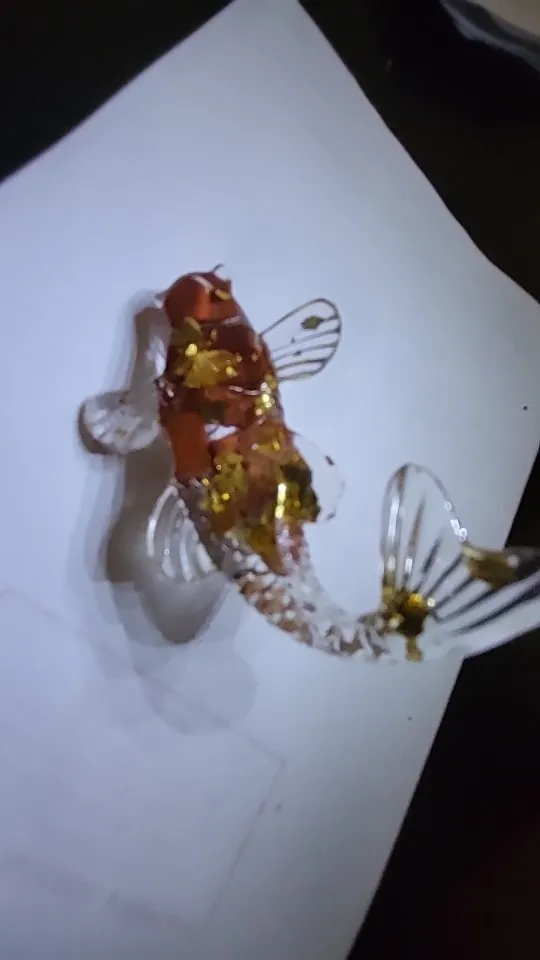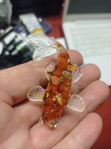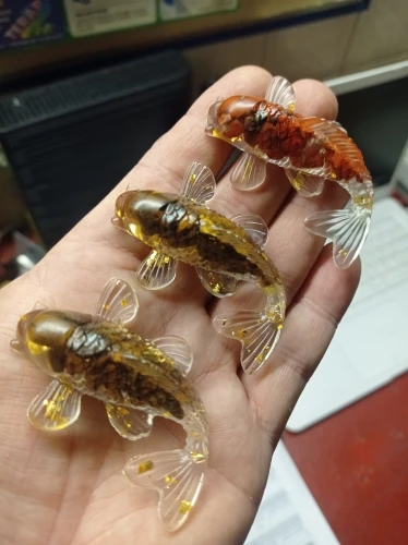 5 cm beautiful plastic fish in gold color. very normal quality. I am satisfied. can be taken