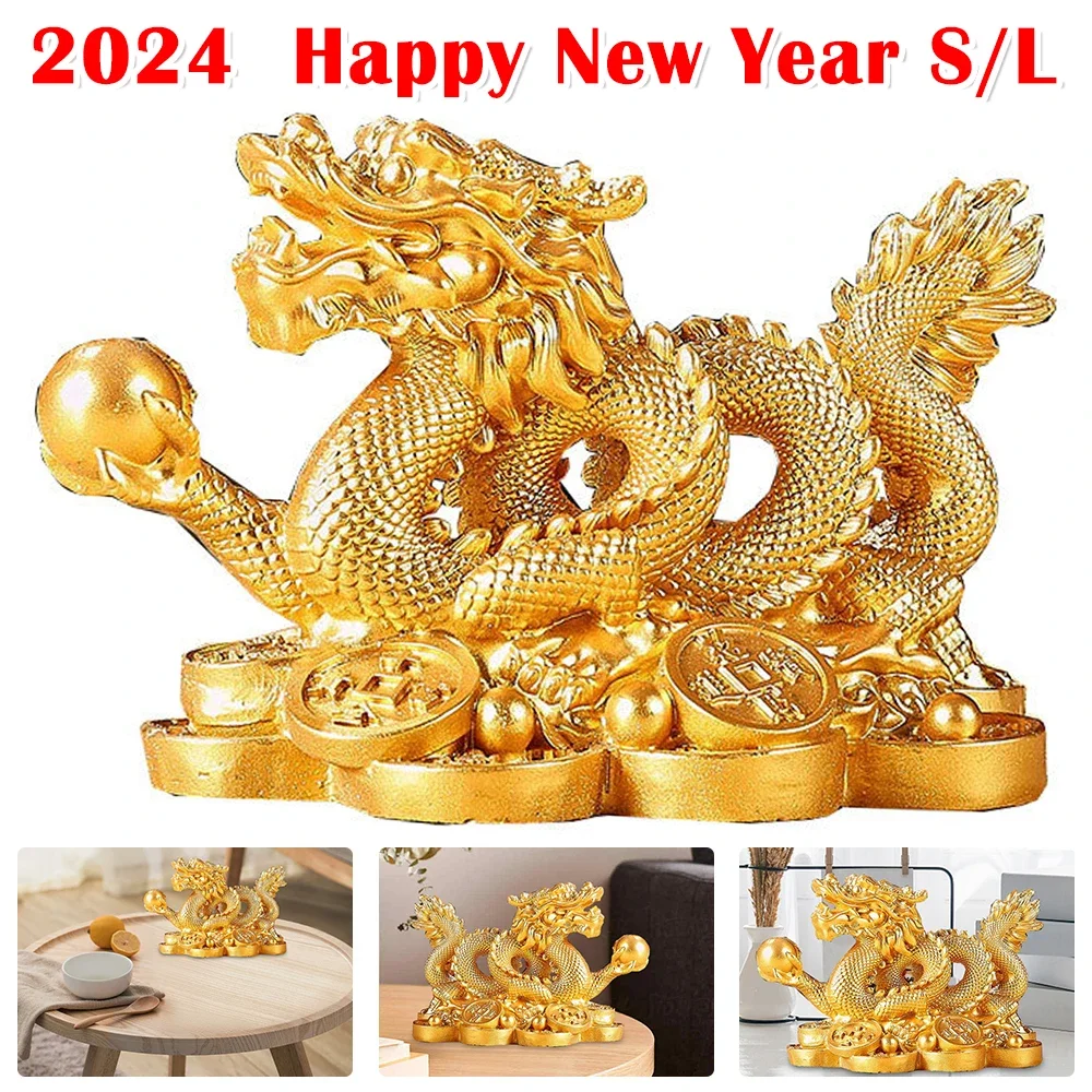 2024 Chinese Dragon Figurines Attract Wealth Auspicious Dragon Statuette Good Luck Money Dragon Decoration Model for Home Office Specification:
