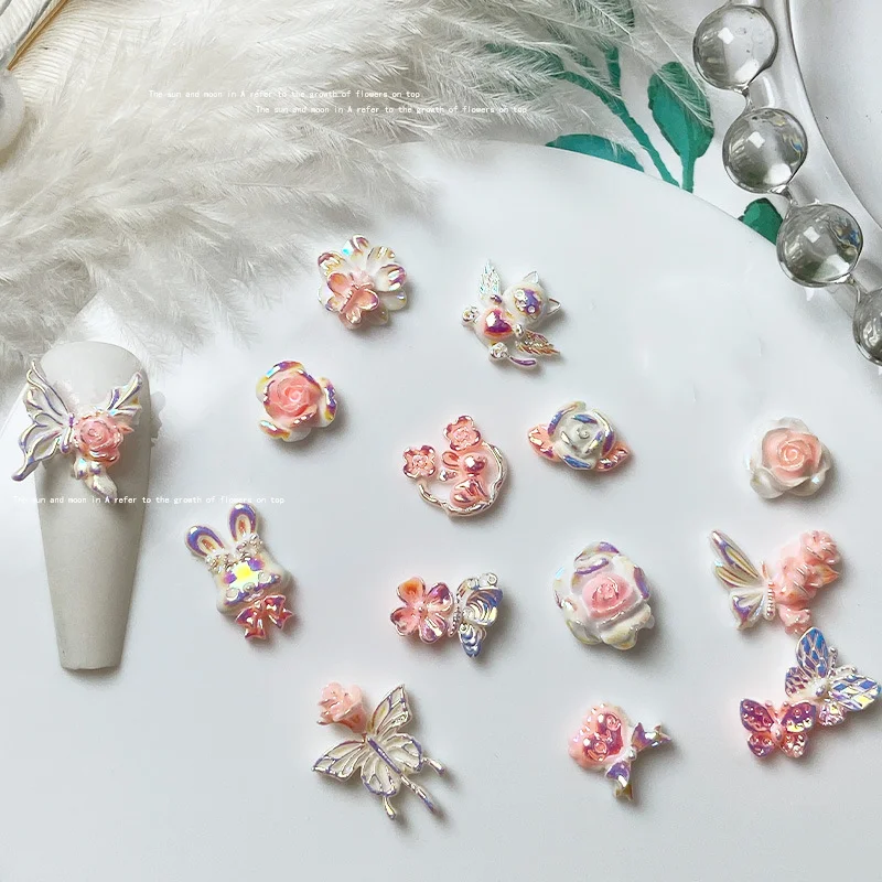 20pcs Multi Shapes Fantasy Cartoon Resin Nail Jewelry Charms Kawaii Accessories 3D Cute Bowtie, Bear Nail Art Decorations Luxury