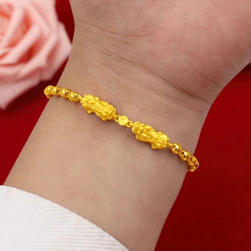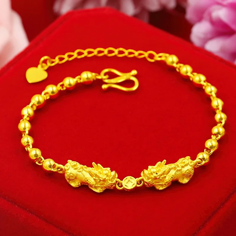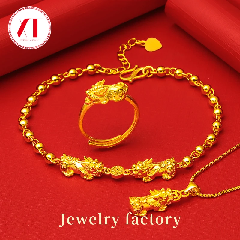 24K Gold Plated Pixiu Bracelet Chinese Mythical Beasts Wealth and Health Lucky Jewelry for Men Women Rings Bracelets Necklace