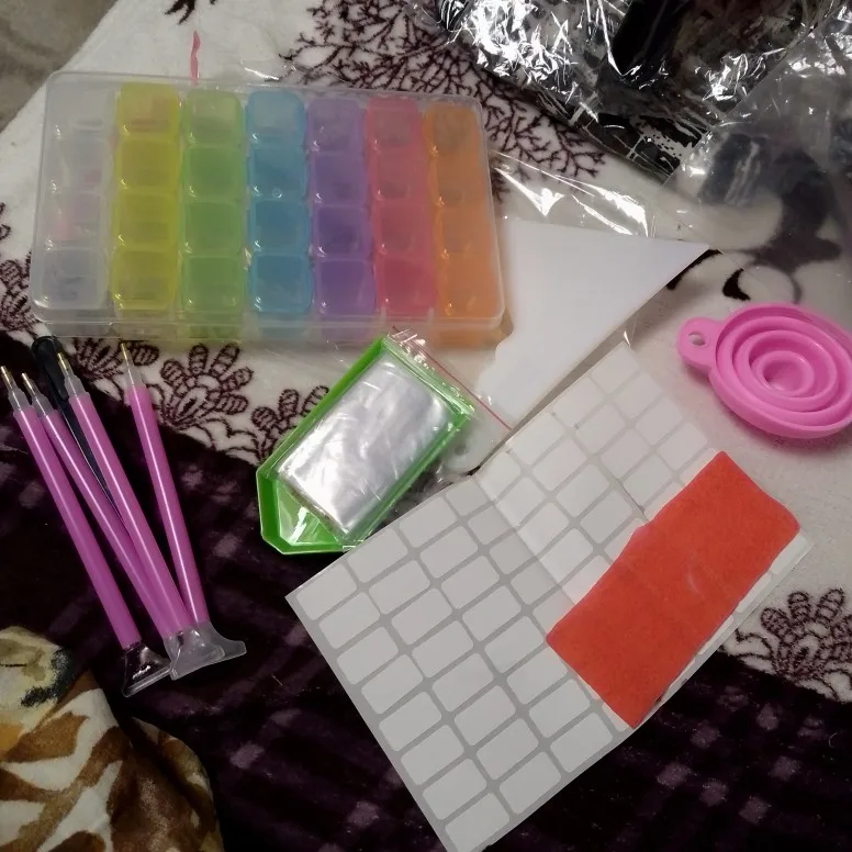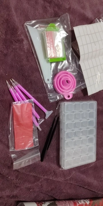 This is such an amazing product. It comes with everything I need for my Diamond Paintings and also helps me keep the diamonds organized.