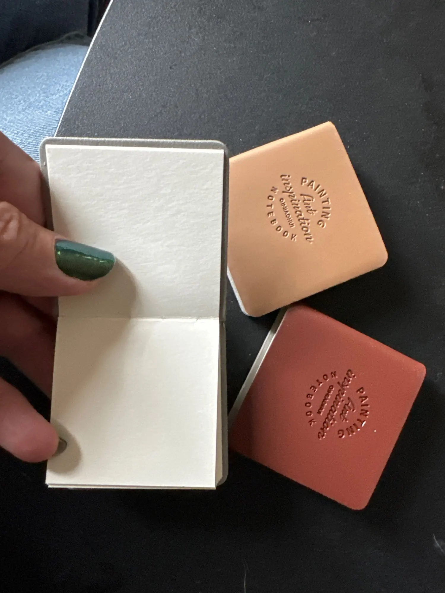 Very little sketchbooks. Really nice to make small illustrations in. The paper can absorb a lot of moisture. The cover is a bit thinner than expected. For this price I am very satisfied!