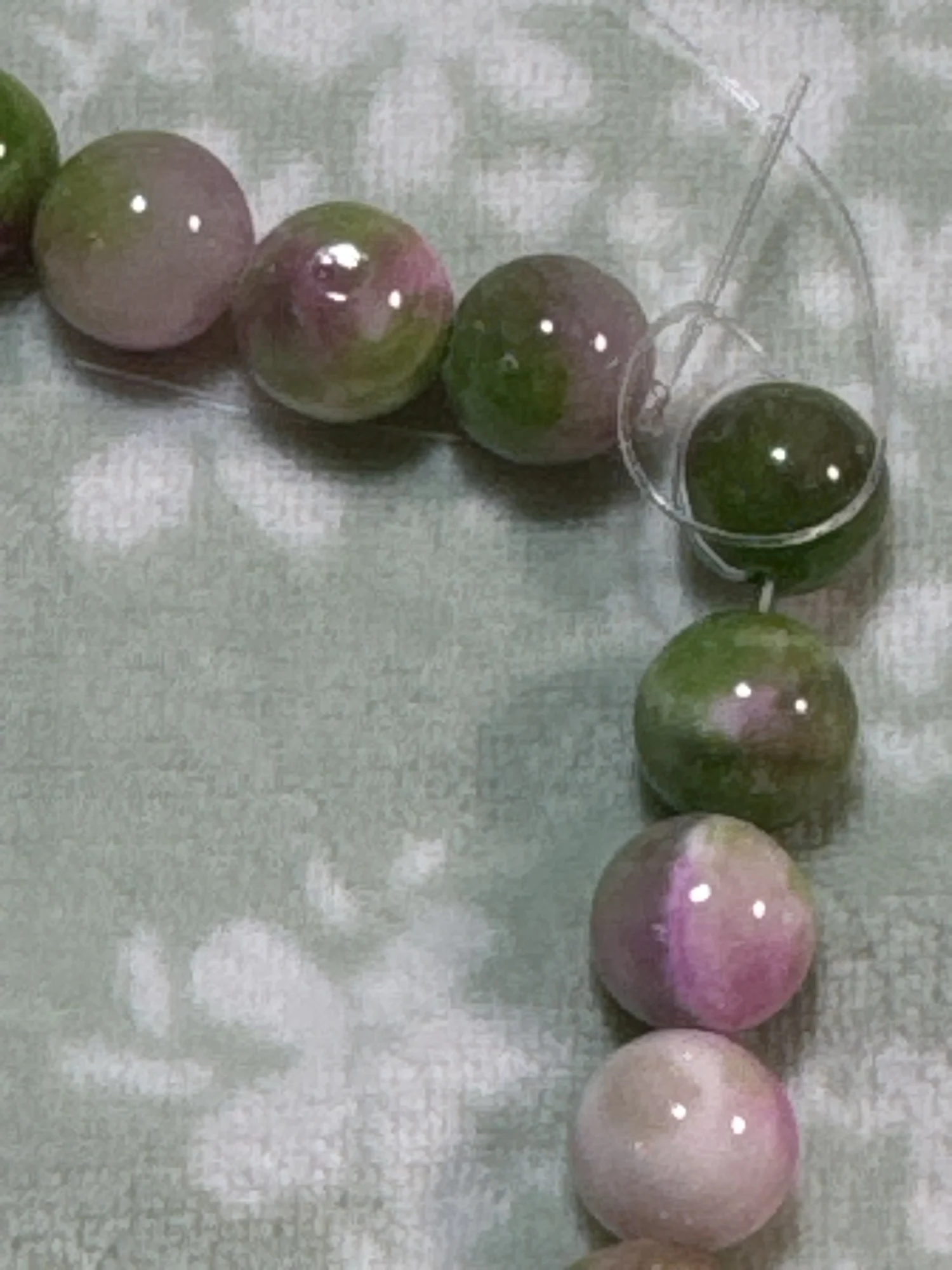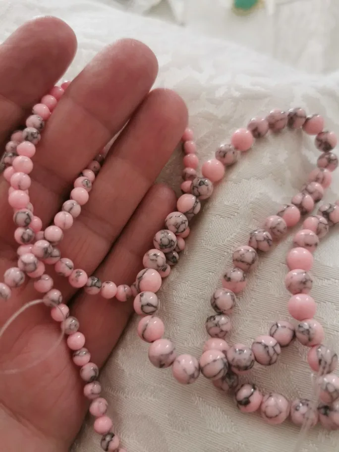 Beautiful beads. This is a painted stone, which I do not know, but painted well. The beads themselves are even, without chips. 1 piece defective, with chipping