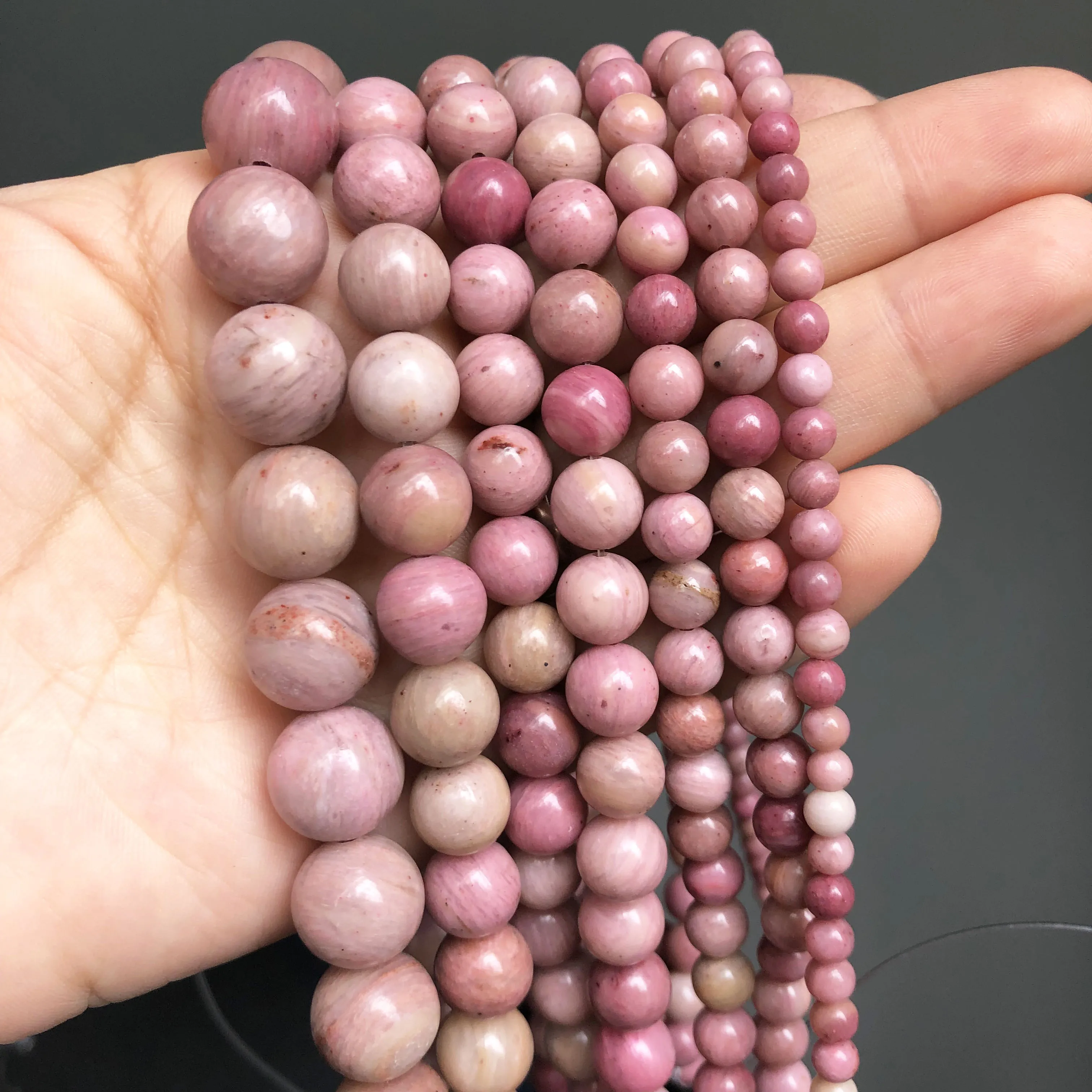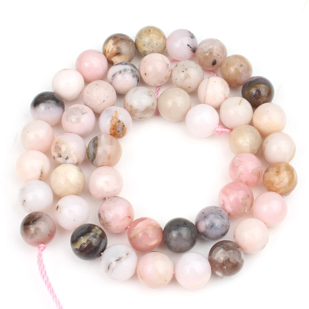 4/6/8/10mm Pink Natural Stone Beads Rhodonite Quartz Opal Jade Round Loose Beads For Jewelry Making Supplies Diy Bracelets 15”