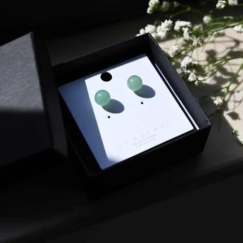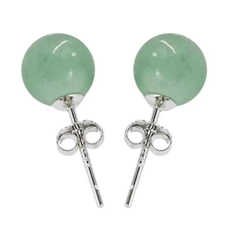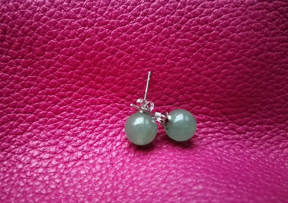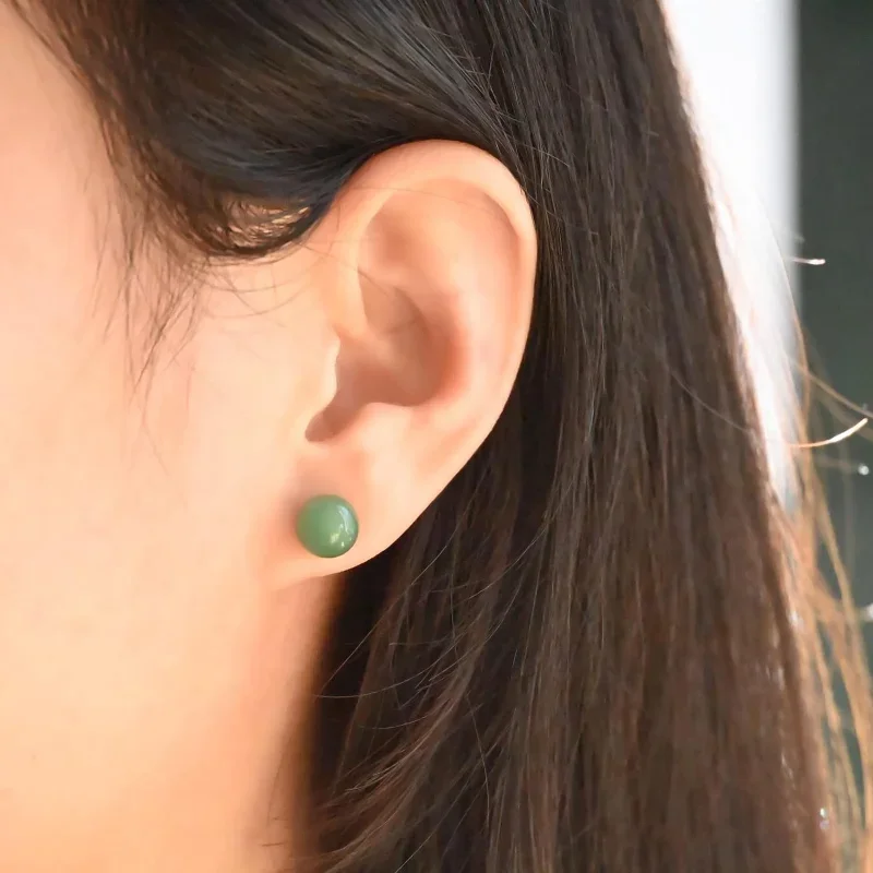 –Earrings studs for women minimalist design, diameter of jade is 8mm, length of ear post is 12mm.