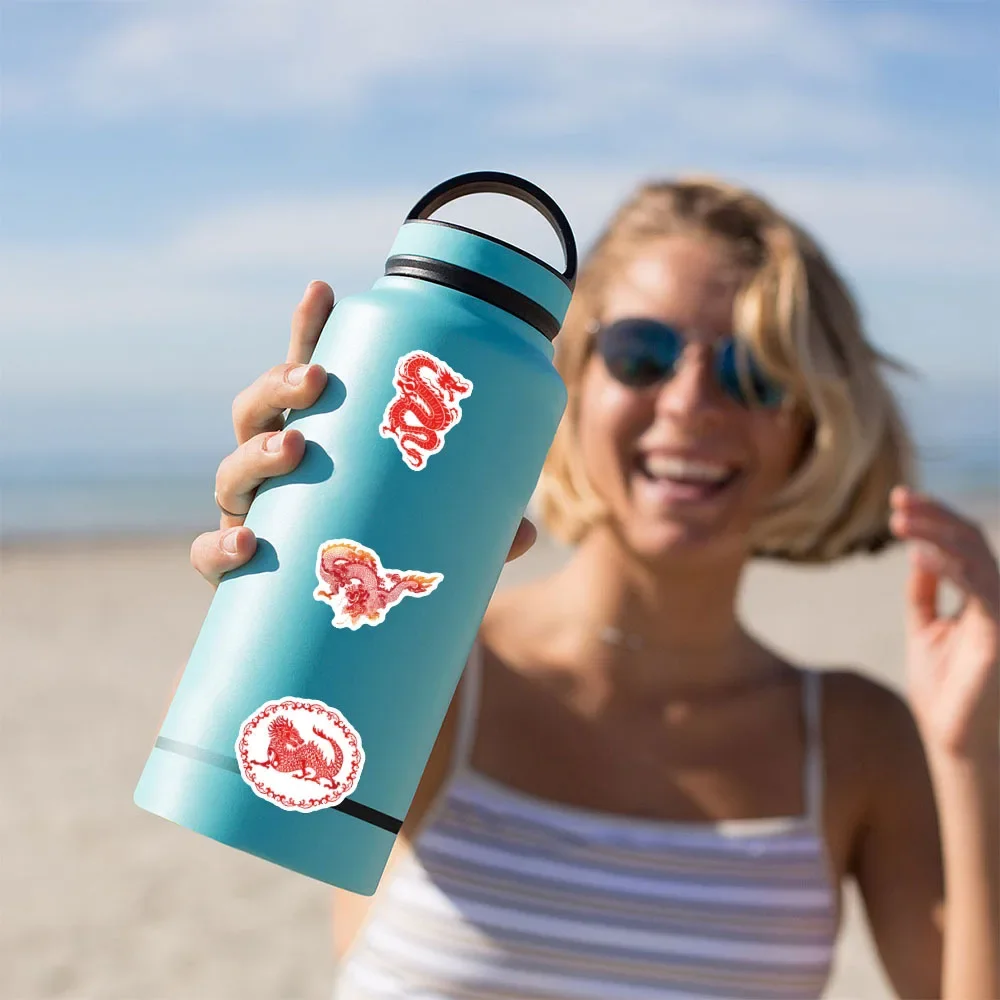 50PCS Chinese Dragon Cartoon Stickers Paper Cutting Zodiac Animal Phone Diy Shell Water Cup Waterproof Decorative Sticker Toys