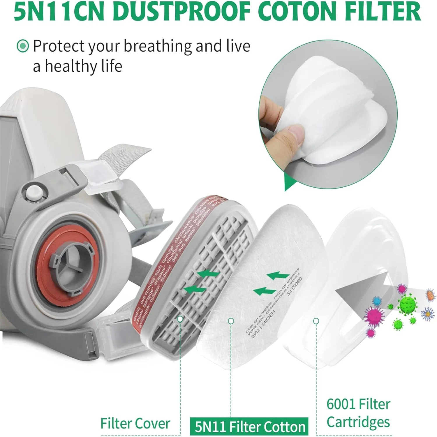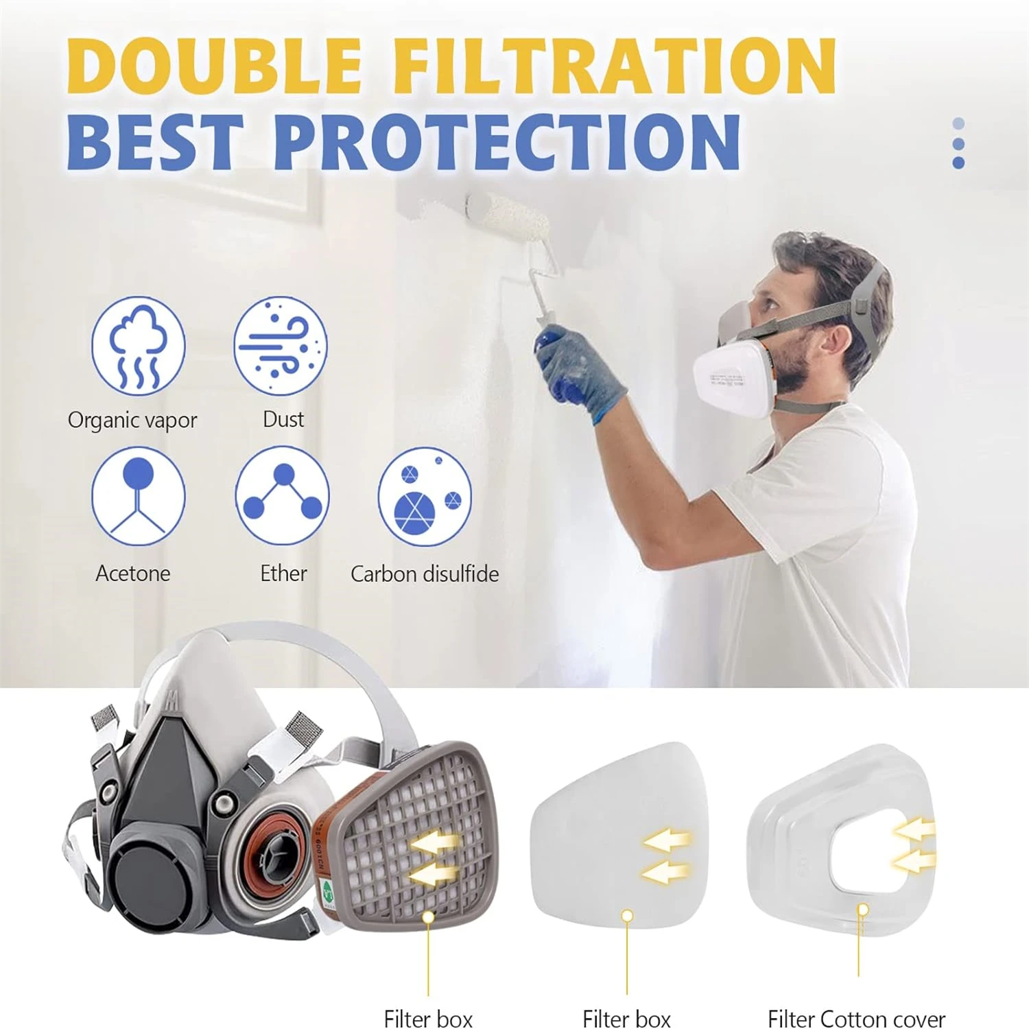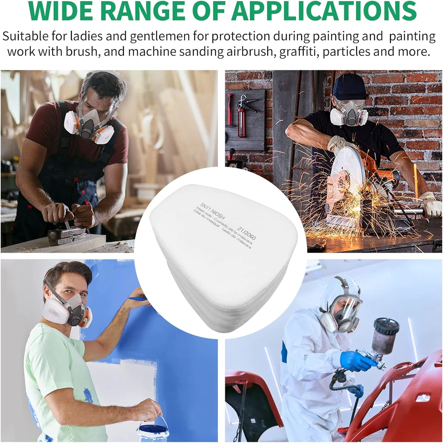 【Effective Protection】Our electrostatic filter cotton uses multiple layers of protection, layer by layer purification. High-quality electrostatic filter cotton has higher adsorption capacity, low respiratory resistance, and protects our respiratory health. Respirator filter against particulate matter, dust, chemicals, paint, pollution, cleaning, spray, grinding, sawing, and welding.