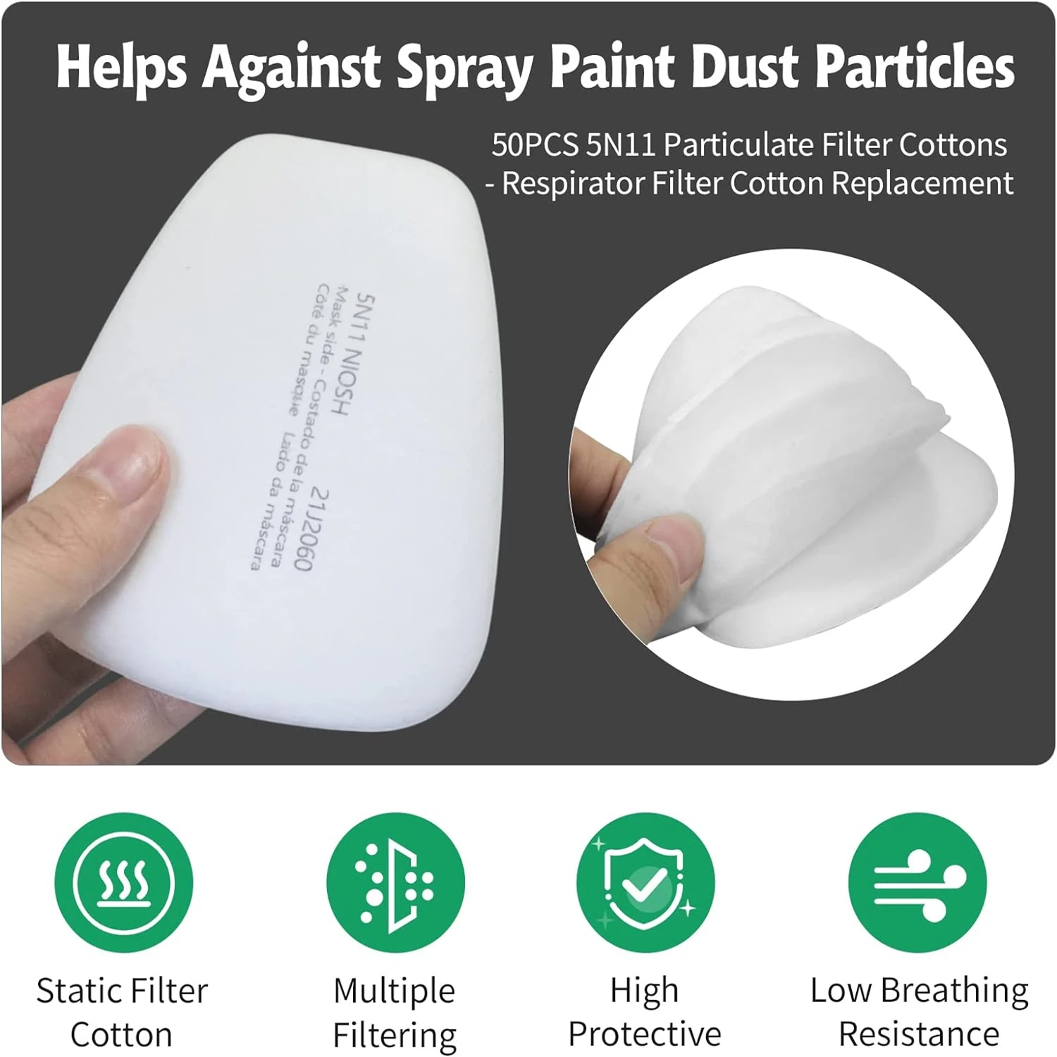 【100% Satisfaction Service】Total 10-100Pcs 5N11 Particulate Filter Cotton, sufficient quantity of replacement particulate filter cotton to keep you using it longer and not run out too quickly. Meet your various needs. If you are not satisfied with any reason, please contact us and we will deal with it.