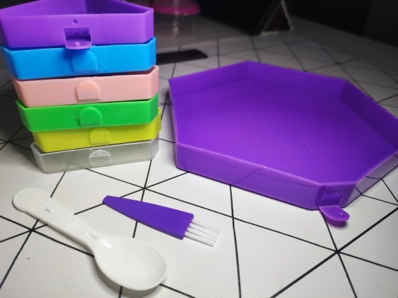 I was thinking of buying one of the Foam trays with several boxes so I could work with several colors at once. And suddenly I saw this one, it is very comfortable, it has a pearl emptying system and it is also more manageable. I love it, I recommend it is very useful, even for beginners like me. I actually bought 2 to give one to my sister