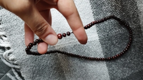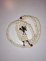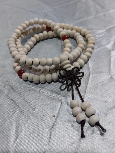 I honestly believed that the accounts similar to a Catholic rosary were going to be bigger. It looks good material, I am satisfied and I like the knot that the bad japa (rosary) has. I counted 108 along with the guru account (big) but the other 3 red ones I did not tell them and what I think they are made of a material similar to plastic. Thank you for the product and how cheap is a good material for how accessible it is and it arrived earlier than estimated in the app.
