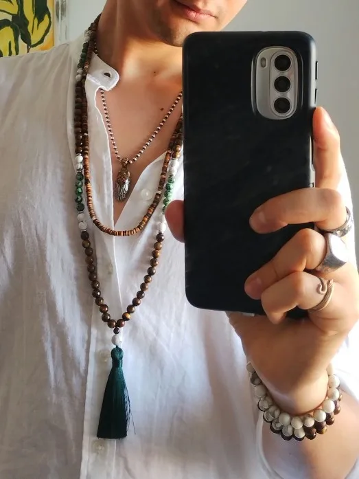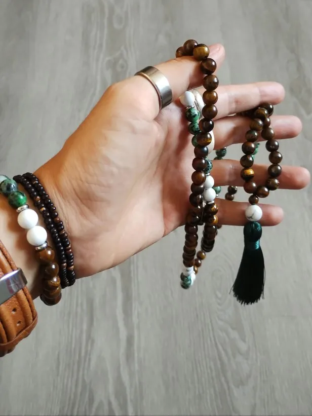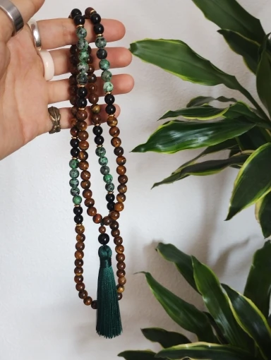 8mm Yellow Tiger Eyes Turquesa Africana Black Onyx Japamala Set Meditation Yoga Spirit Jewelry 108 Mala Beaded Tassel Necklace