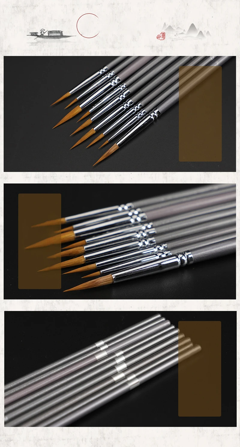 These brushes are only good for play but are worth the low ~US$3 price. These brushes are definitely not very high quality, in part because the hairs are just not arranged right. However, your child can now have a set of round brushes which resemble your professional brushes and which do load paint significantly better than nylon brushes do.