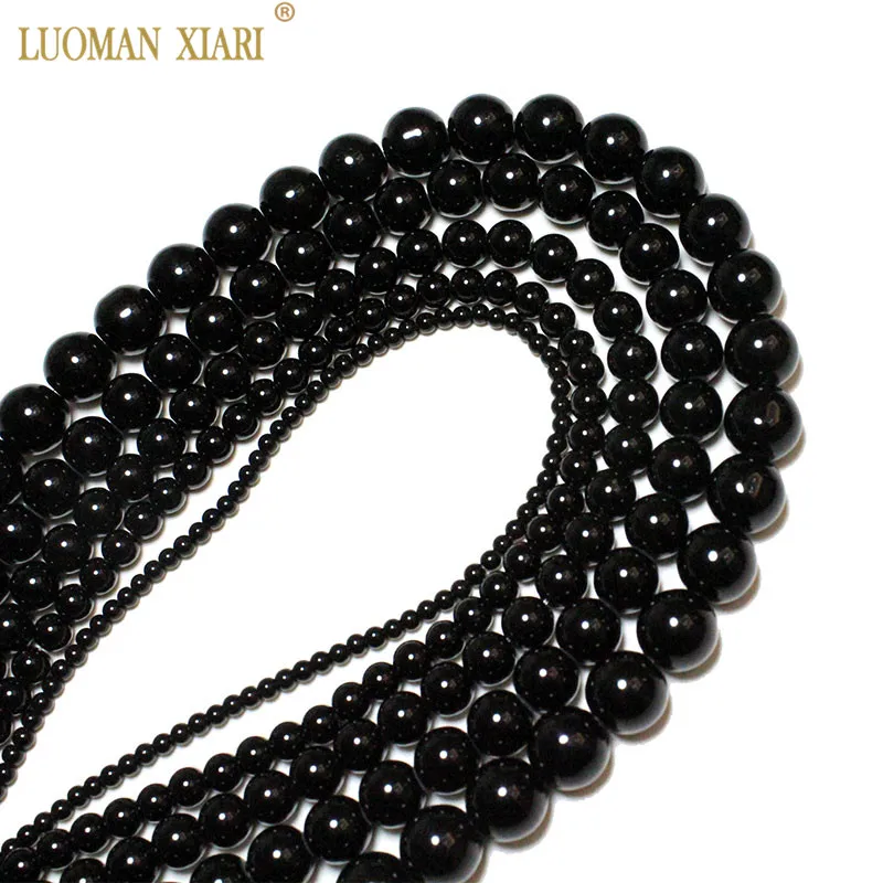 Wholesale Black Round Natural Stone Beads Loose Beads For Jewelry Making DIY Bracelet Necklace 4/6/8/10/12/14 mm Strand 15”