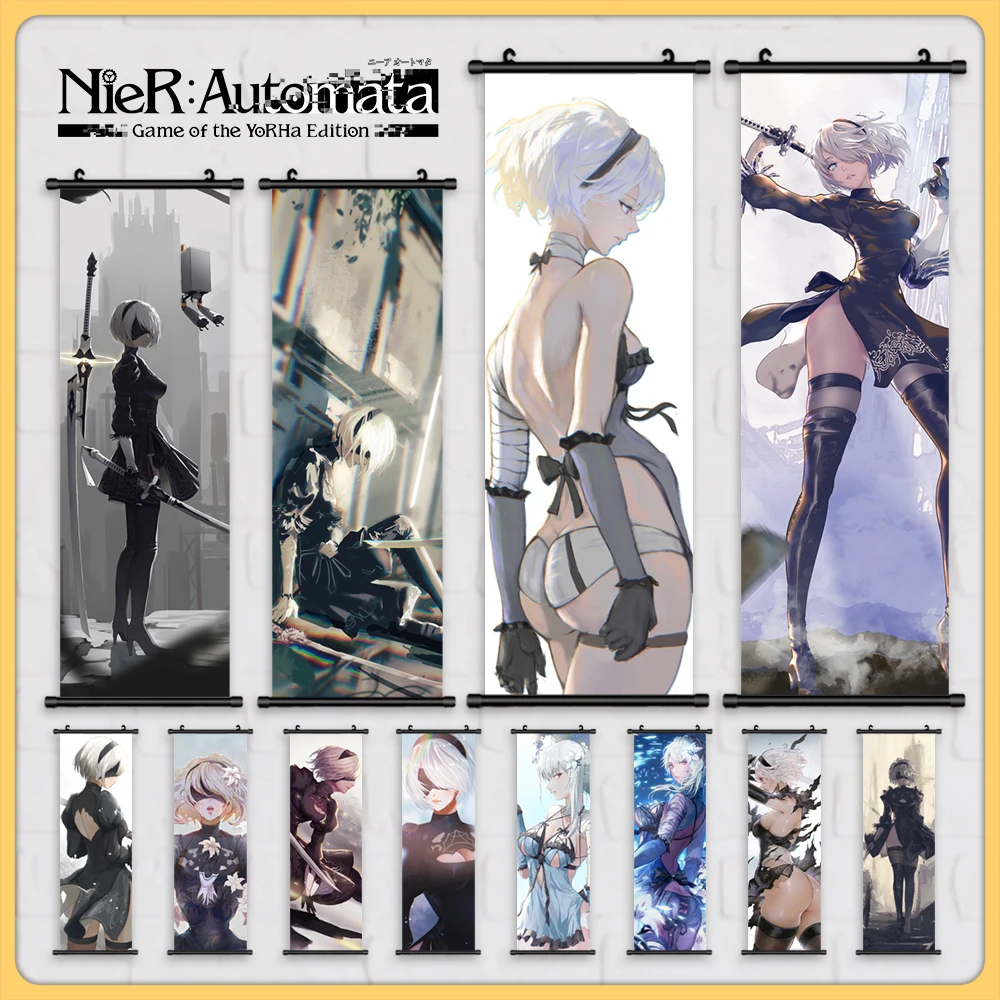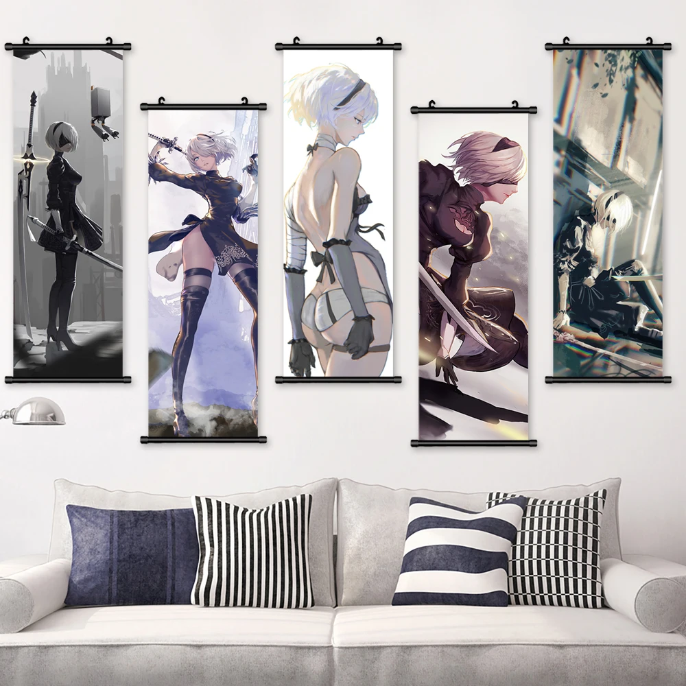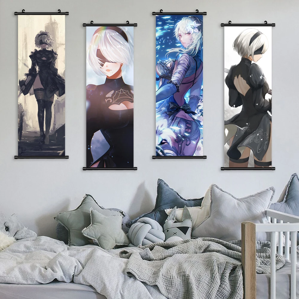 1pc Japanese Anime Style Plastic Hanging Painting NieR:Automata Cartoon Scroll Picture Canvas Posters Art For Home Decor
