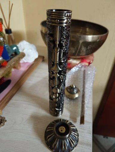 Absolutely fabulous. Supremely etched incense holder. High quality. Heavy and sturdy. An absolute joy. It evokes the feeling of tranquility, opulence, and happiness. Came quickly at my doorstep . Came with some incense sticks I would highly recommend this incense holder and the nice seller. thank you