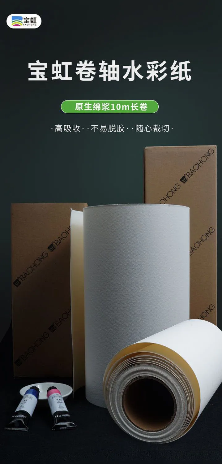 BAOHONG Watercolor Paper Roll 140lb 300g 27cmX10m/37cmx10m 100% Cotton Academy Art Paper for Watercolor Gouache Ink Acrylic