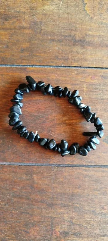 Natural Gem Stone Black Chips Stretch Bracelets for Girls Jewelry |