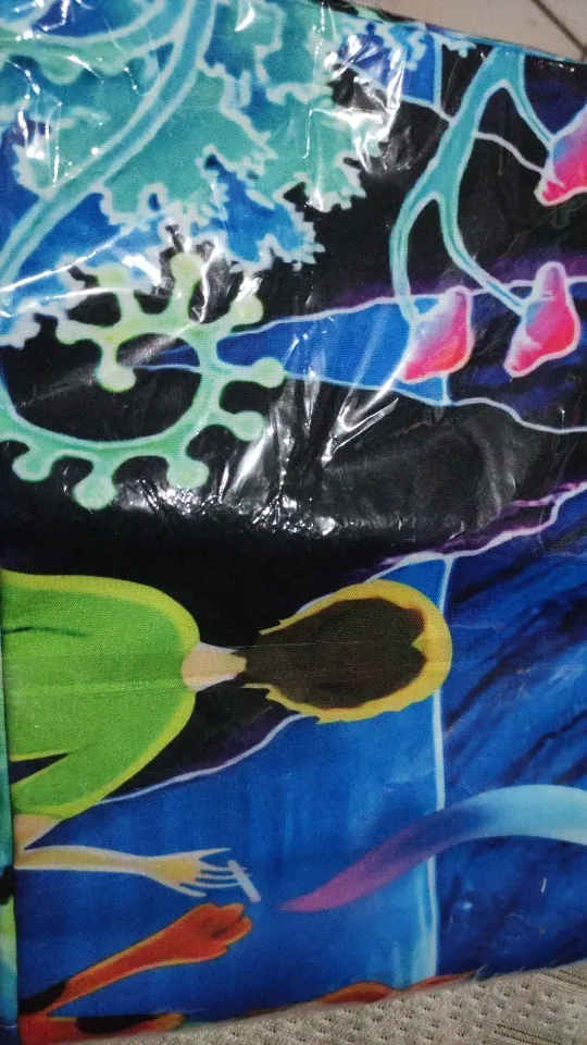 Great fabric and color shipping was really fast only thing is I didn’t get clasp to hang it up which was disappointing but still cool.