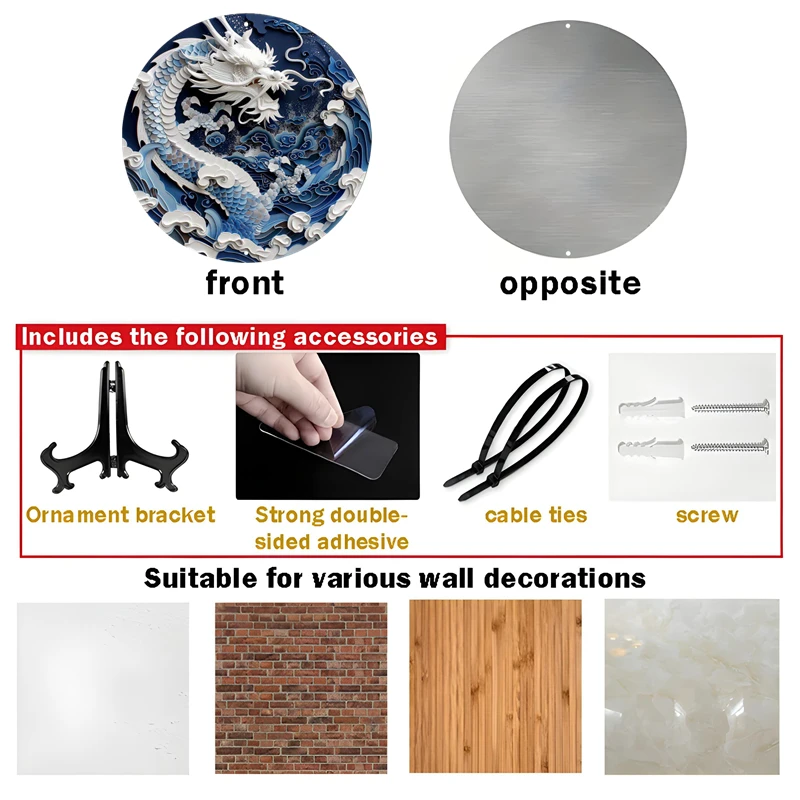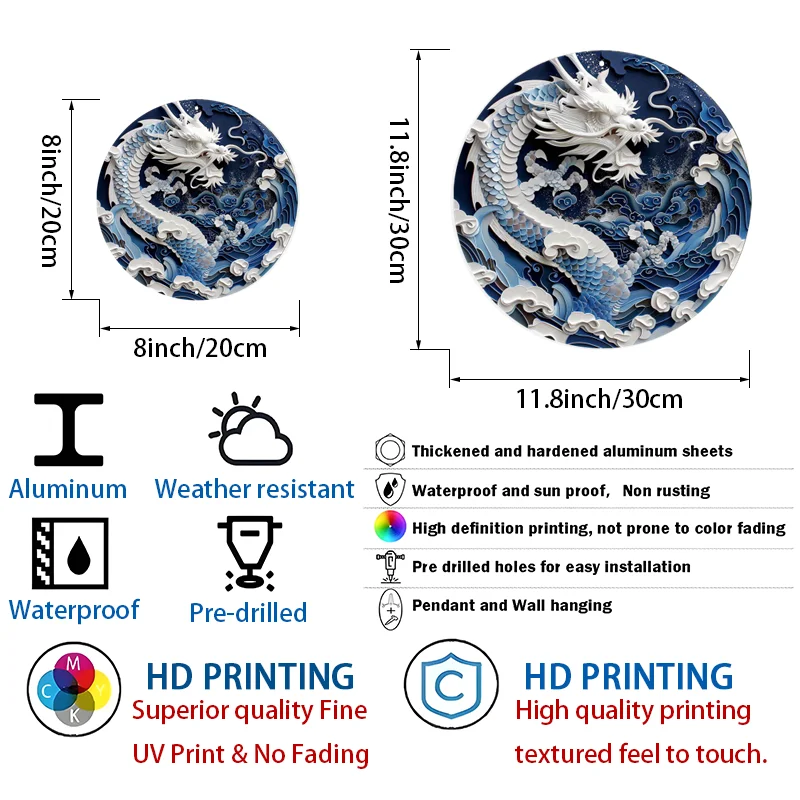 Material:Aluminum Alloy Material Features:100% brand new, premium quality, high strength, corrosion resistance, waterproof, rustproof, UV resistant, fire retardant, scratch resistant. Product Features: Graffitiresistant finish, bendable, extraordinary detail, easy to hang, lightweight, never rusts, suitable for both indoor and outdoor use for years of enjoyment. Size:8×8 inch(20×20 cm)/11.8×11.8 inch(30×30 cm) Packaging Includes:1xMetal Sign,Screws,tape,strong doublesided adhesive, decorative bracket, OPP bag. Suitable for various decorative scenarios. |