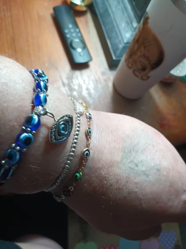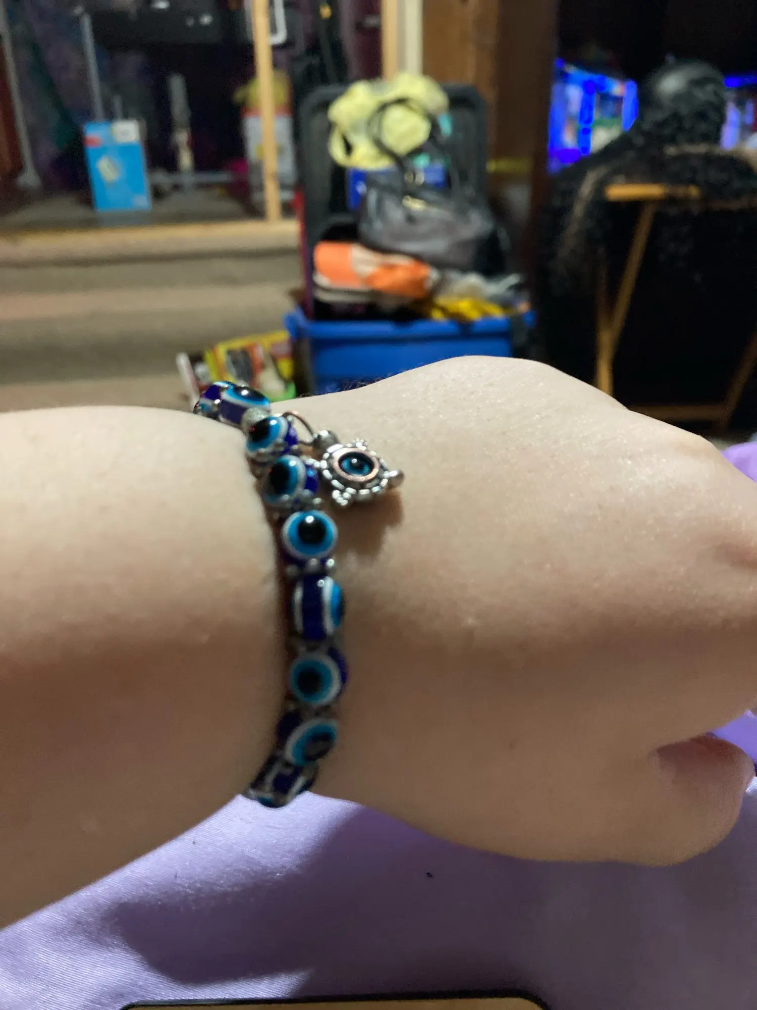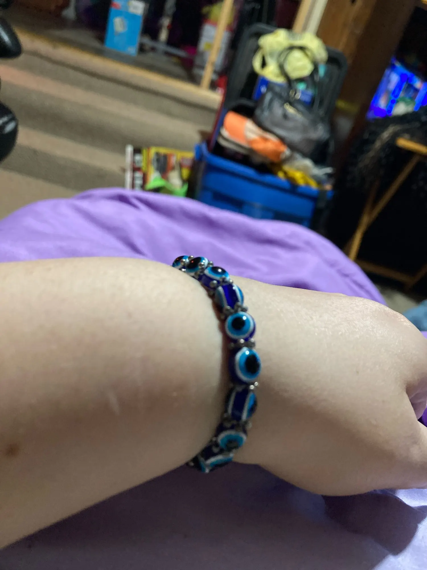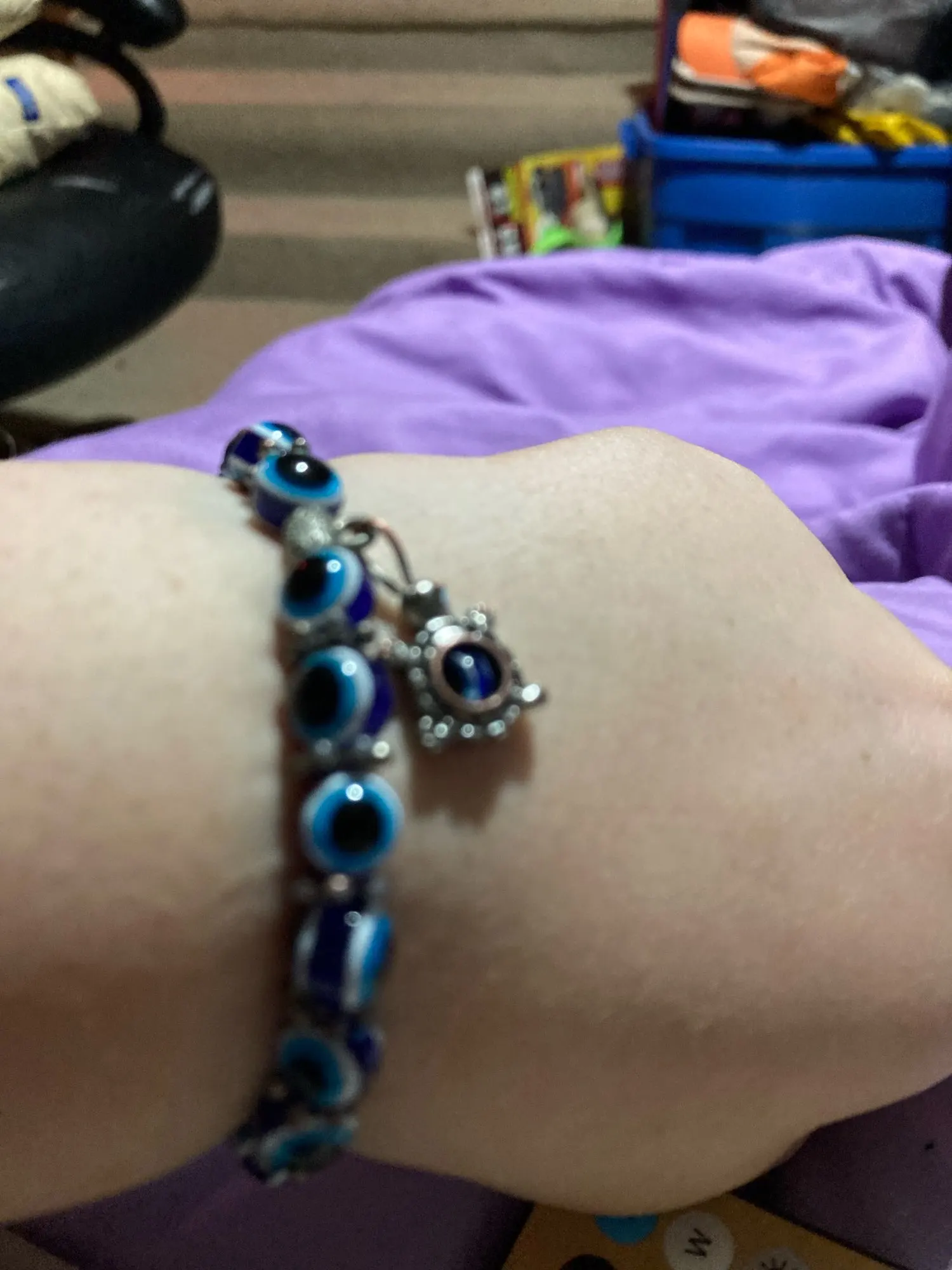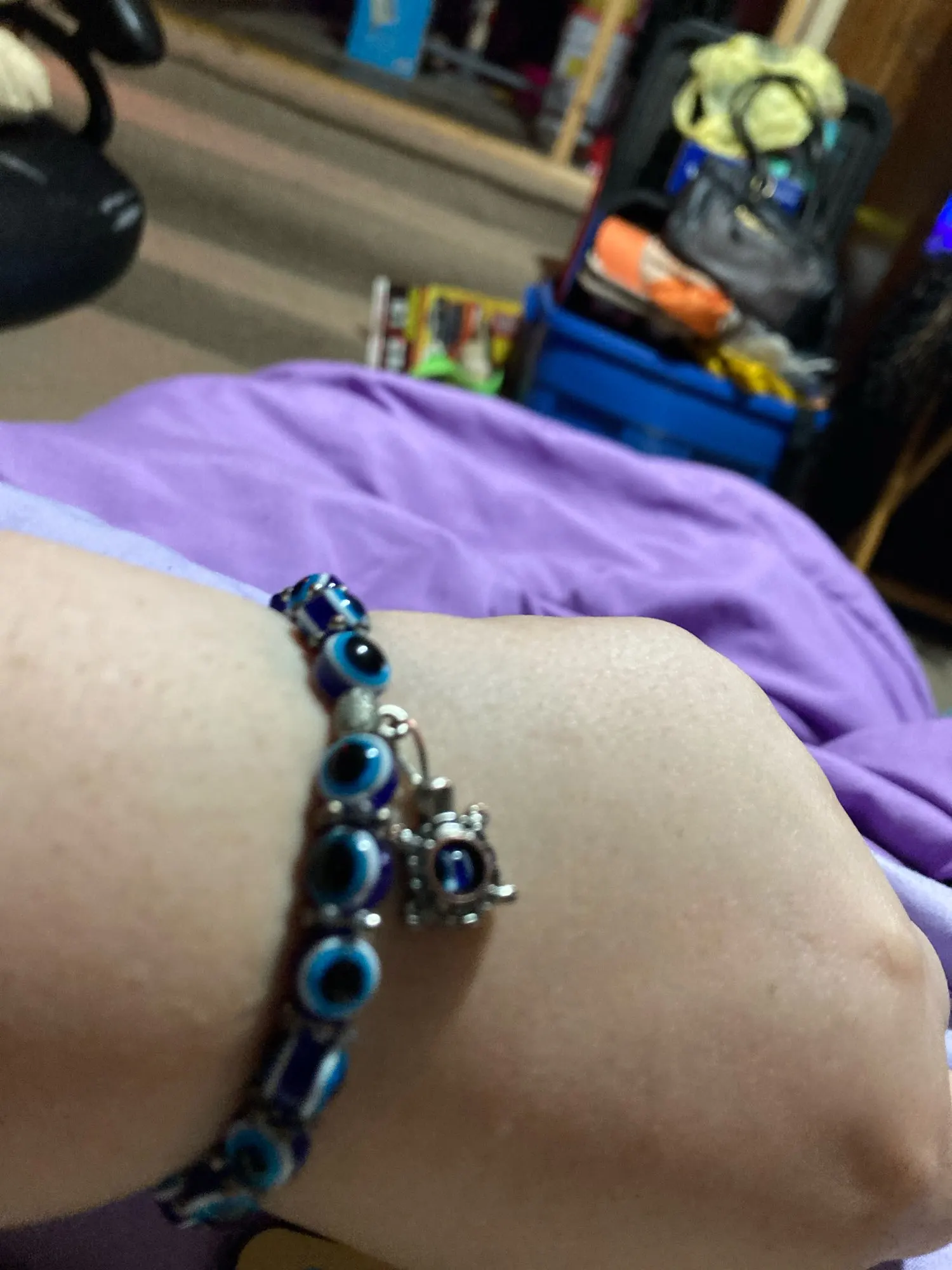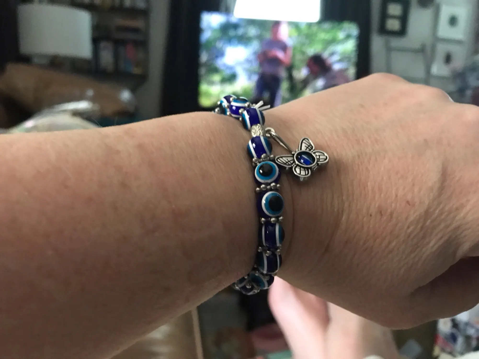 Lovely bracelet with a good stretch and vibrant color. I love the butterfly with the evil eye. I love it.