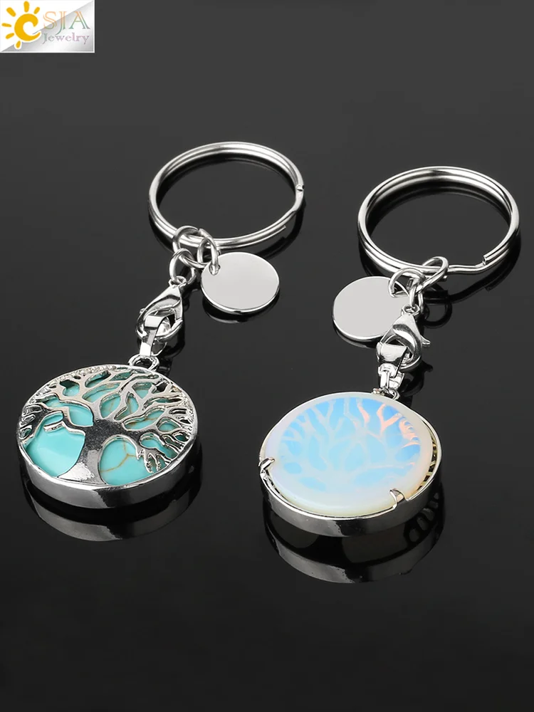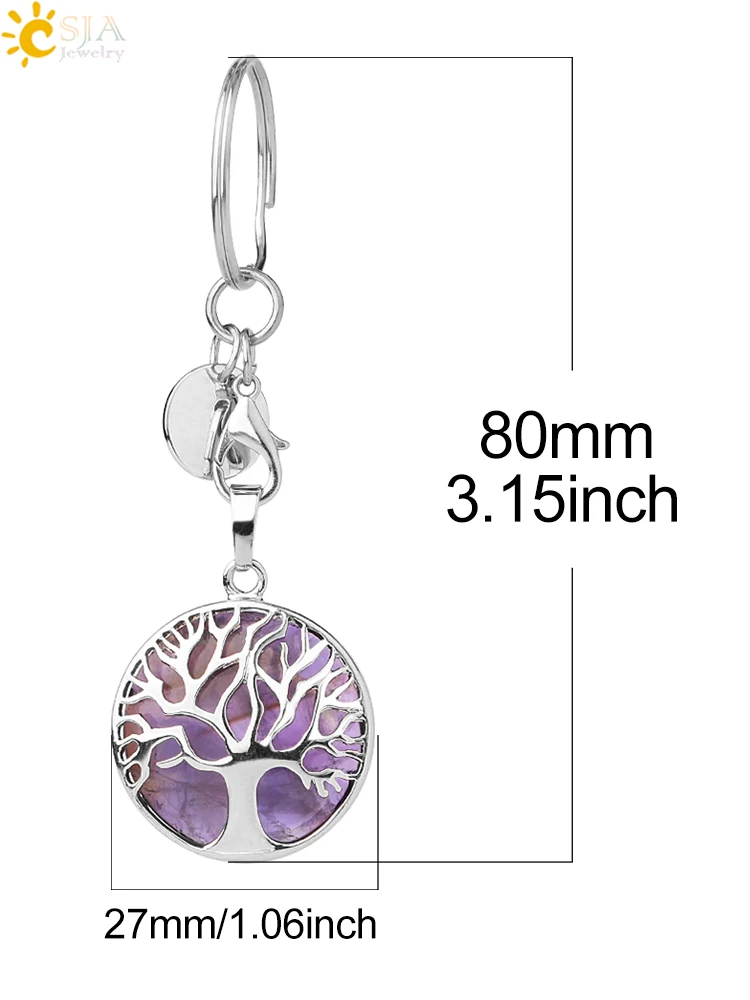 CSJA Luxury Natural Crystal Stone Original Keychain Tree of Life Keychain Lucky Key Ring Car Decor Christmas Women Men G498 |
