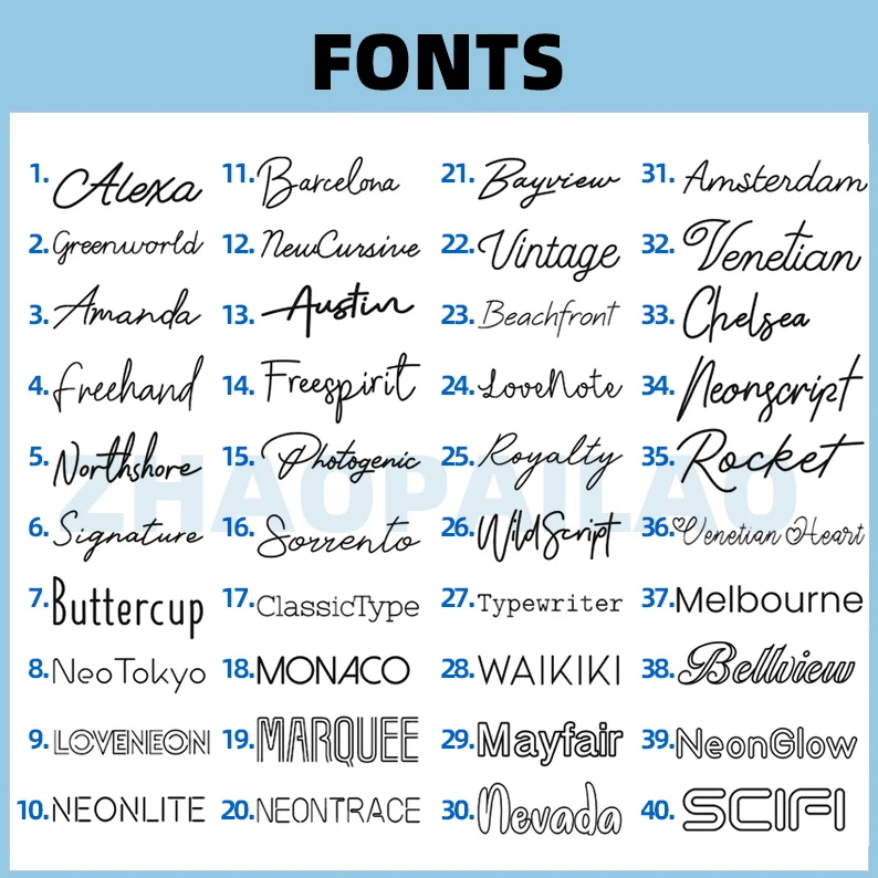 or please send a picture to show your design.(We will default the color pink and the font Barcelona when you don’t noted. Thank you.)