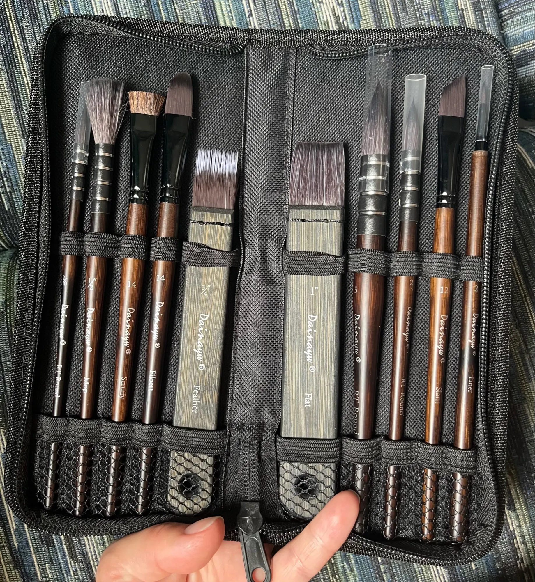 Dainayw 10 Pcs Watercolor Painting Brush Set Mop Organic Blue Squirrel Horse Hair Paintbrush Multi-Function Acrylic Art Tools