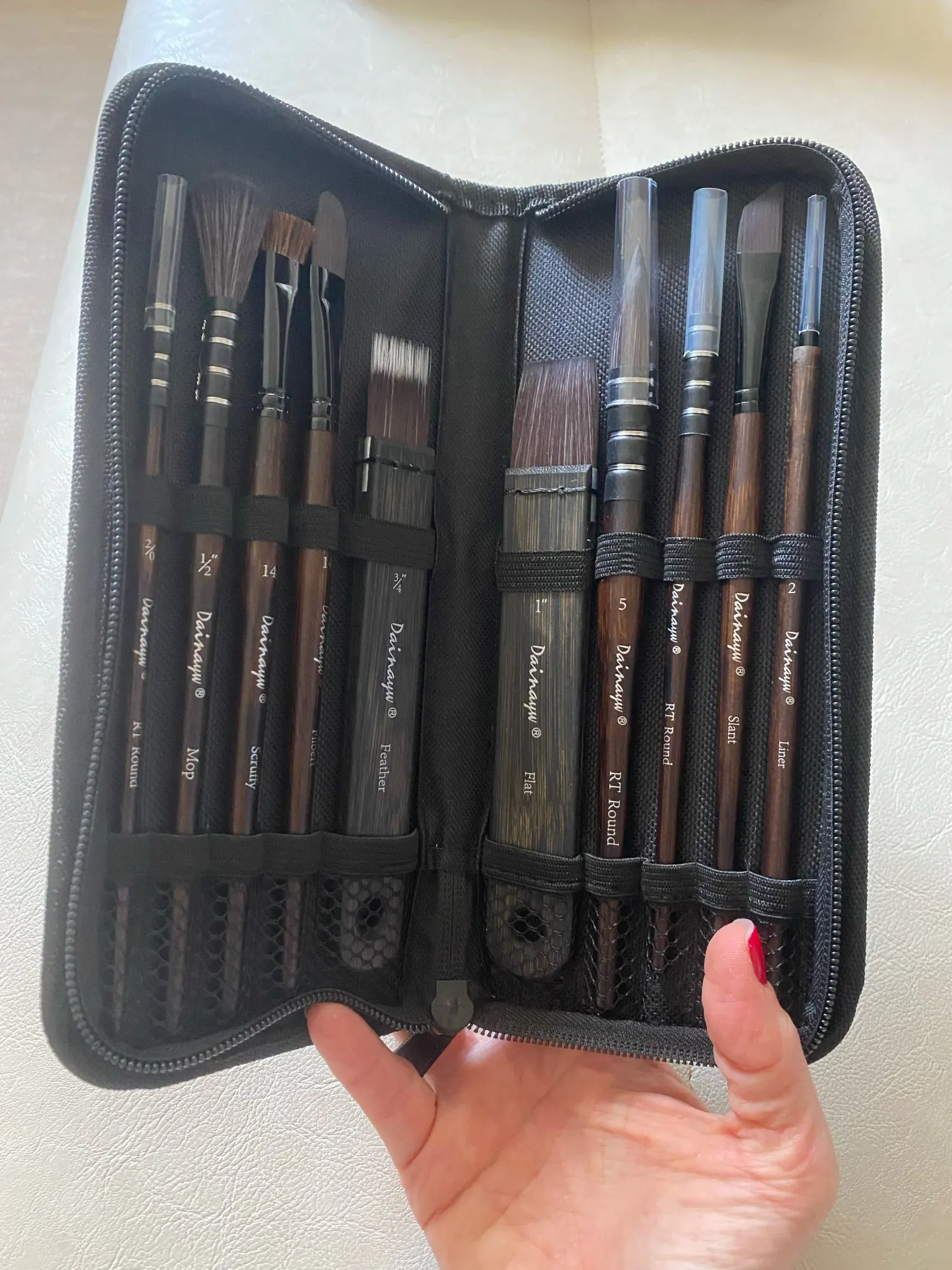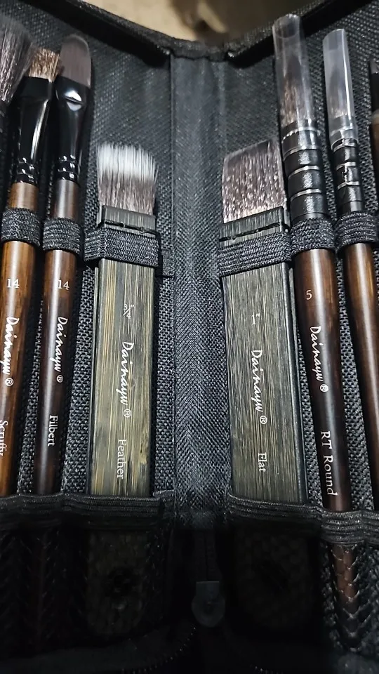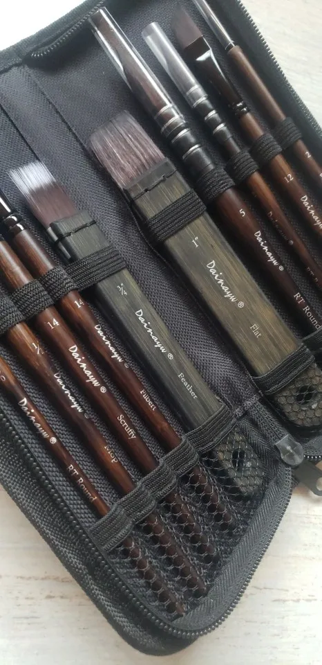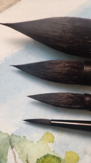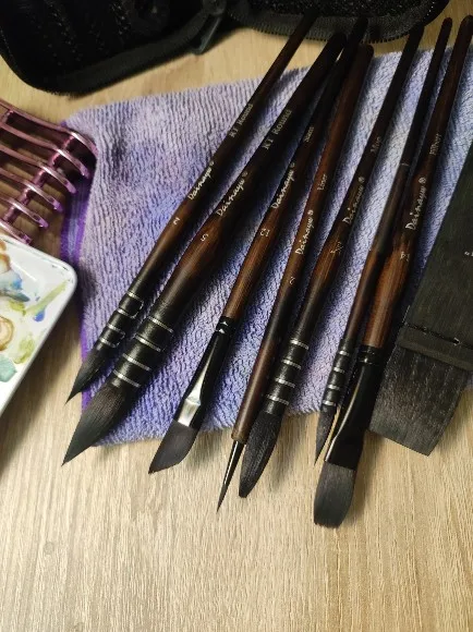 What a marvel of brushes!!💯💯💯I am delighted, I should have bought them before. I have brushes of different recognized brands and these are up to the task. They are soft and return to their position, collect a lot of water and are light and easy to control. Has been quite a discovery. I bought the set more than anything for the round, flat brushes, and they have an exquisite tip. This watercolor I painted it quickly to taste and delighted. If you are thinking about it, buy them!! You will not regret😃The very attentive seller💯Watercolor_lorenamagenta