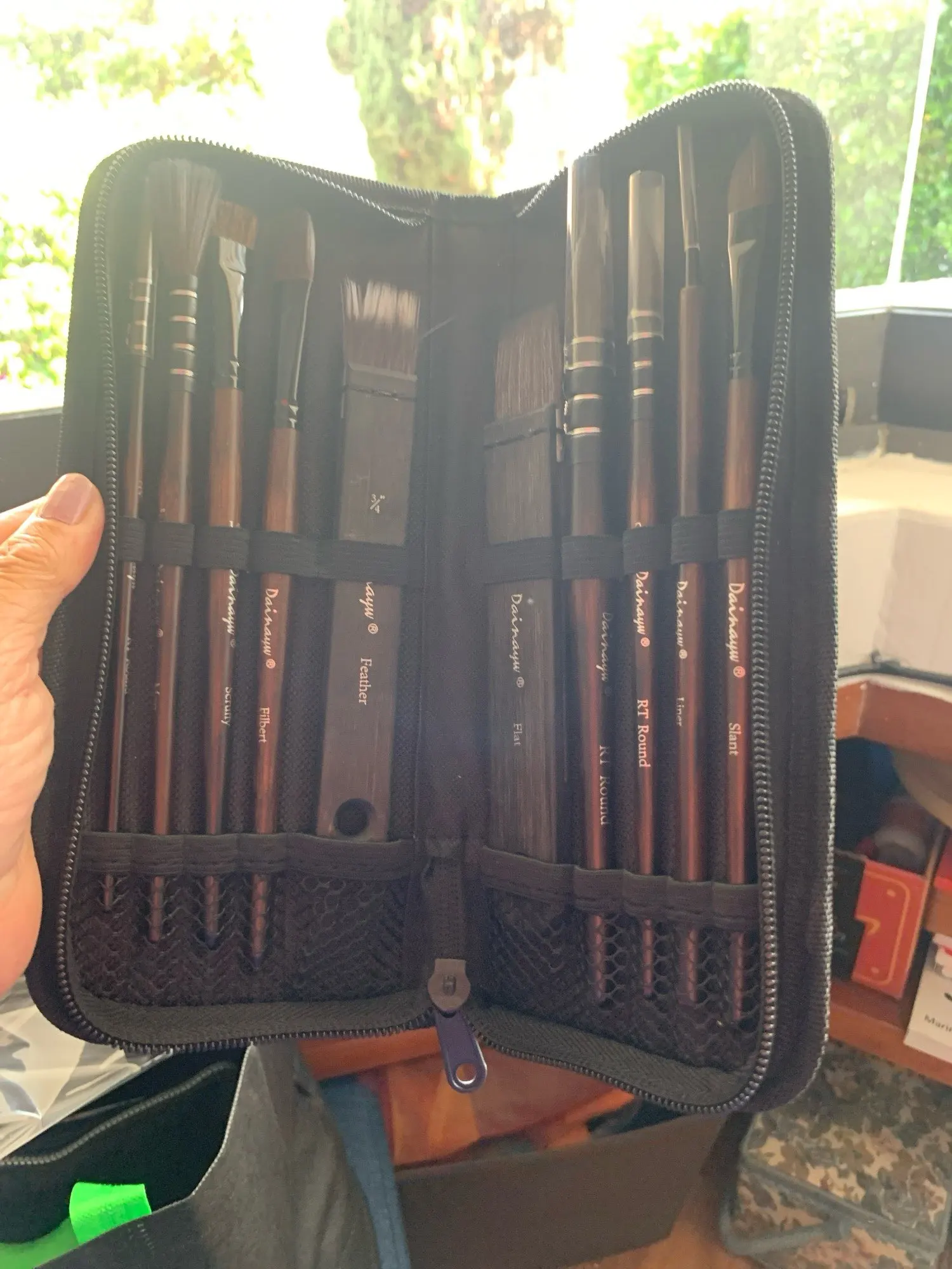 A beautiful purchase arrived within 15 days approx, the logistics of ChinaArtHub is somewhat confusing but effective I am happy with the product identical to that of the photo and the brushes are really soft ideal for my watercolors, oleos I do not recommend it for acrylic because of the paint that is plasticized and can damage the brushes