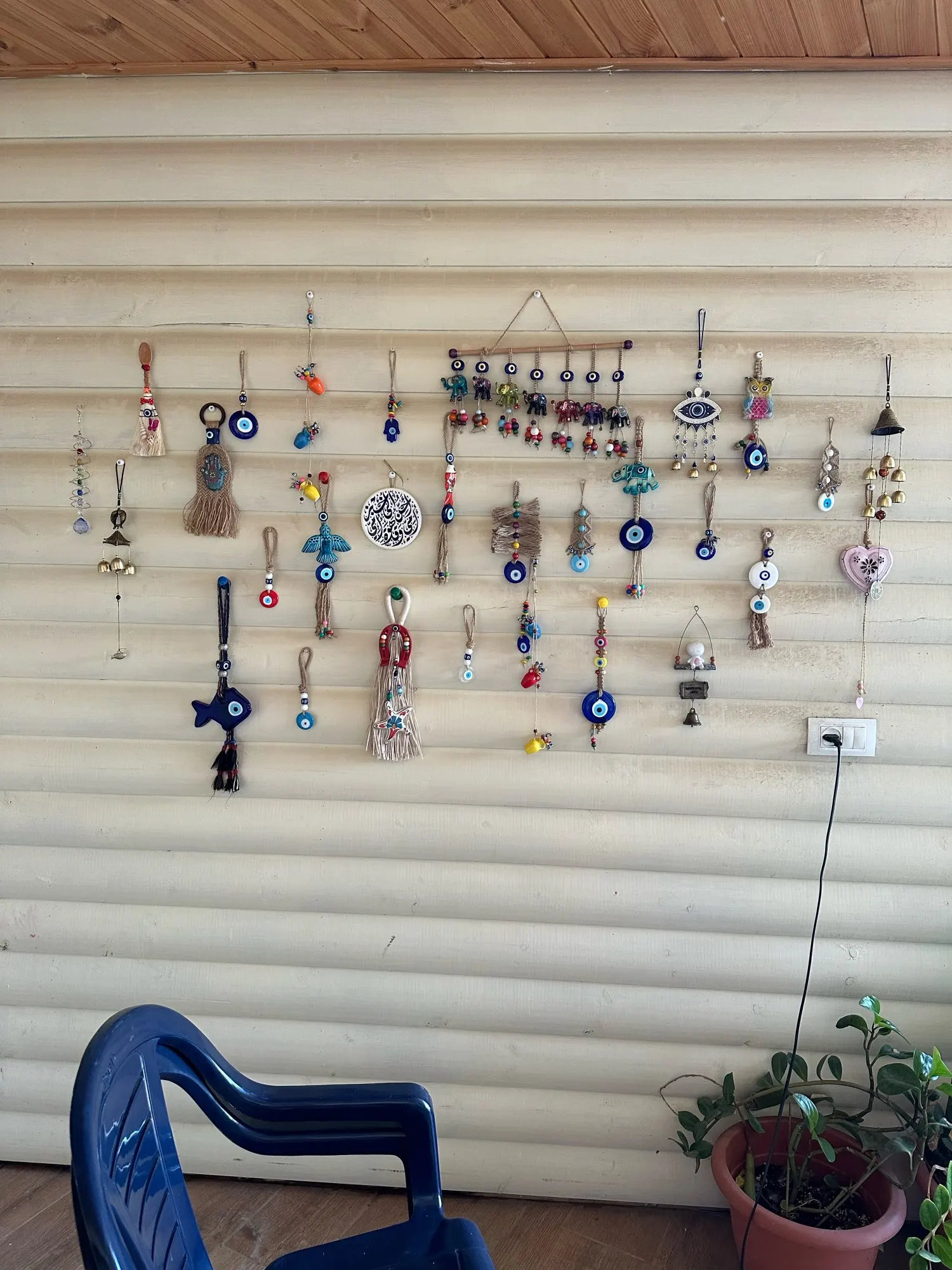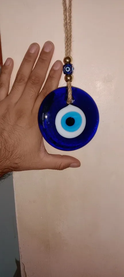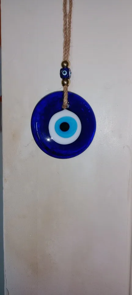 this is a giant Nazar 🧿. it’s heavy and the rope is genuine. just get it cleansed with some sage and make a wish to protect you or you home or wherever it is hanging from.