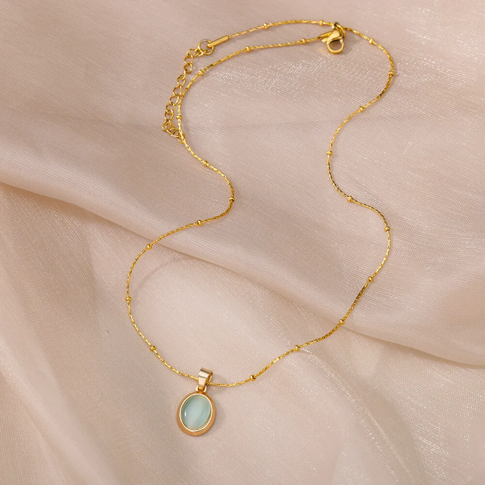 Fashion Oval Opal Pendant Necklace Stainless Steel Chain 18 K Gold Color Cute Lucky Jewelry For Women Accesorios Birthday Gift