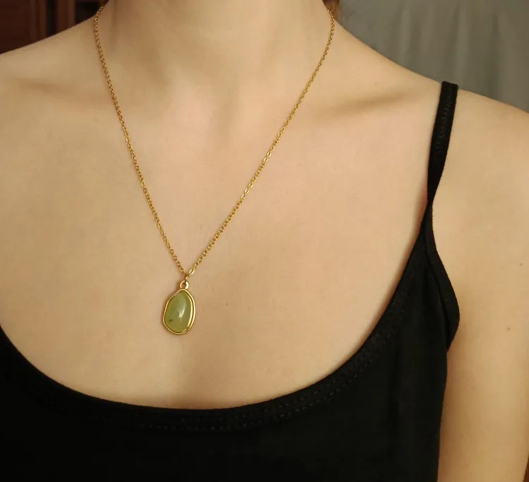 Stainless Steel Necklaces Heart Natural Stone Jewelry Vintage Gold Color Oval Ch…