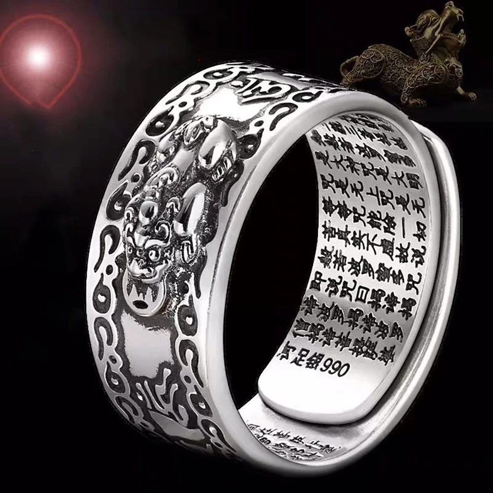 Feng Shui Pixiu Mantra Ring Buddhist Good Luck Amulet Mantra Double Protection Wealth Love Health Ring Gift For Men Women