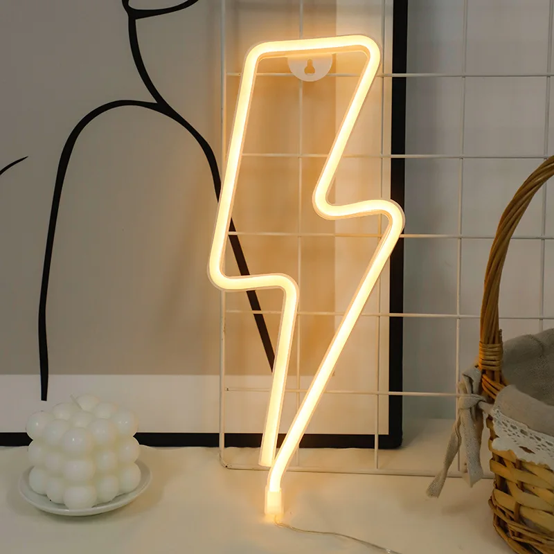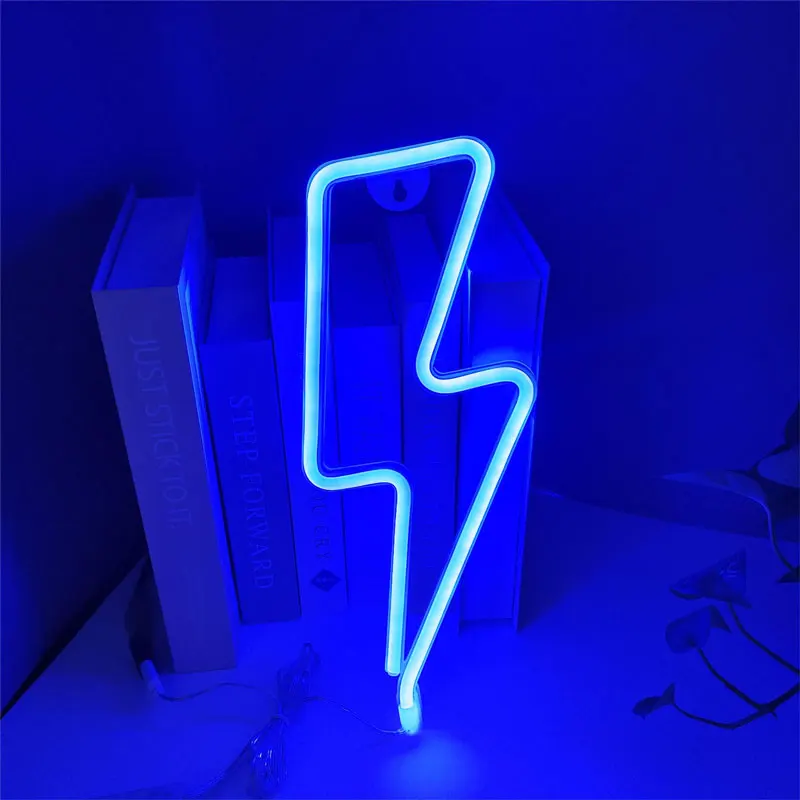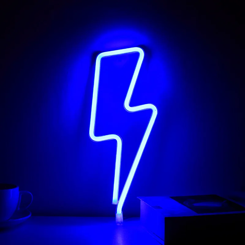 Lightning Shaped Neon Signs for Valentine’s,LED Lights,atmosphere Lighting for Wall, USB/Battery Powered Night Lamps Up Signs,for New Year,Birthday,Party, Living Room,Garden,Courtyard, Corridor, E-sports Room,Home Decoration