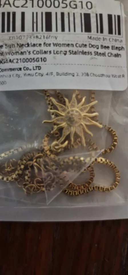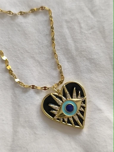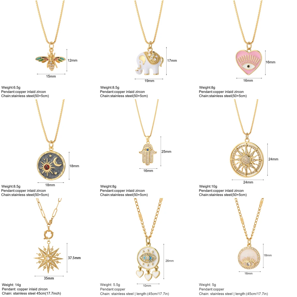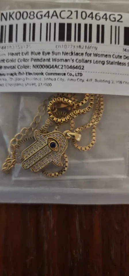 19 reviews for Heart Evil Blue Eye Sun Necklace for Women Cute Dog Bee Elephant Gold Color Pendant Woman’s Collars Long Stainless Steel Chains