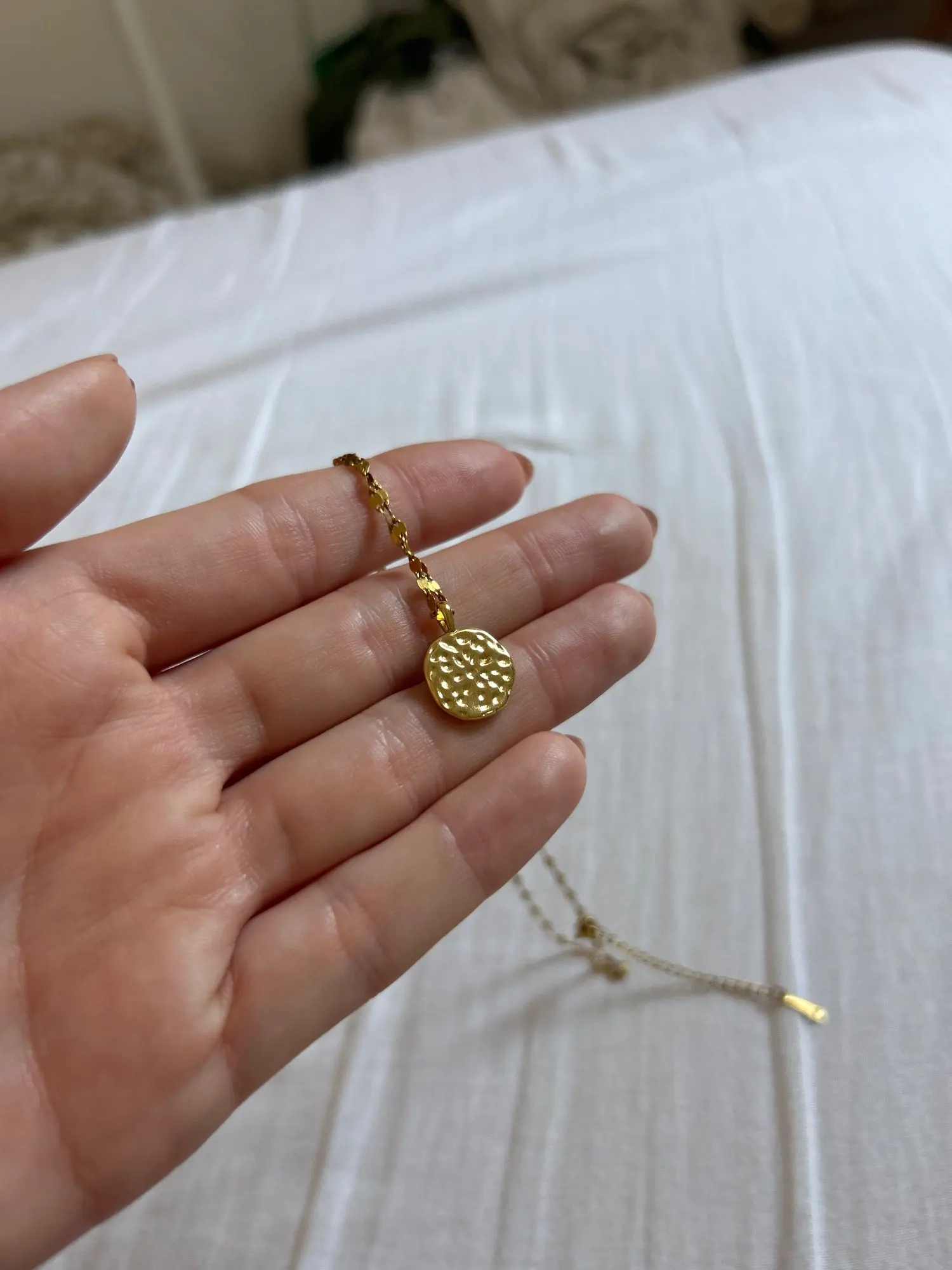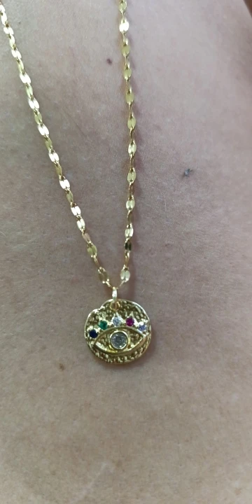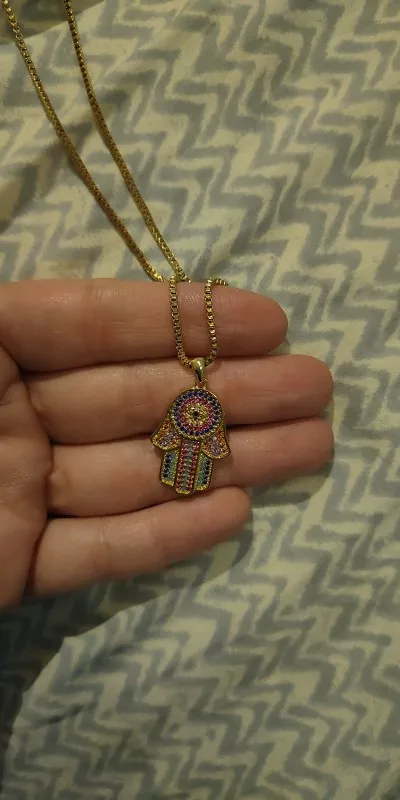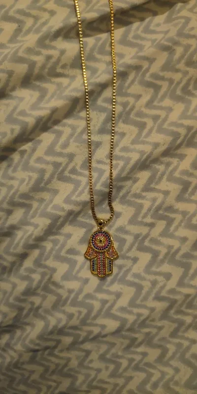 The necklace is beautiful, but I wish it was another kind of gold… also is not big like I think.. kind of tight…