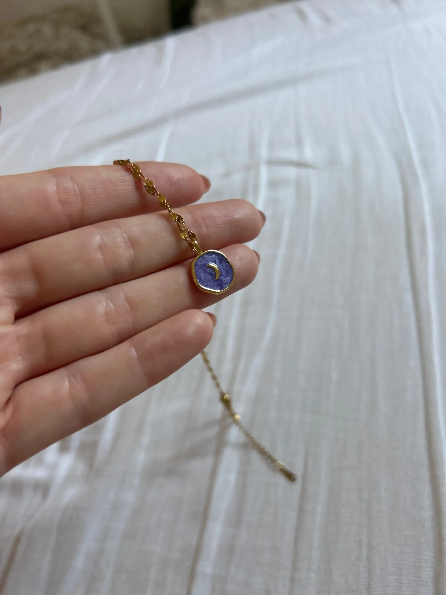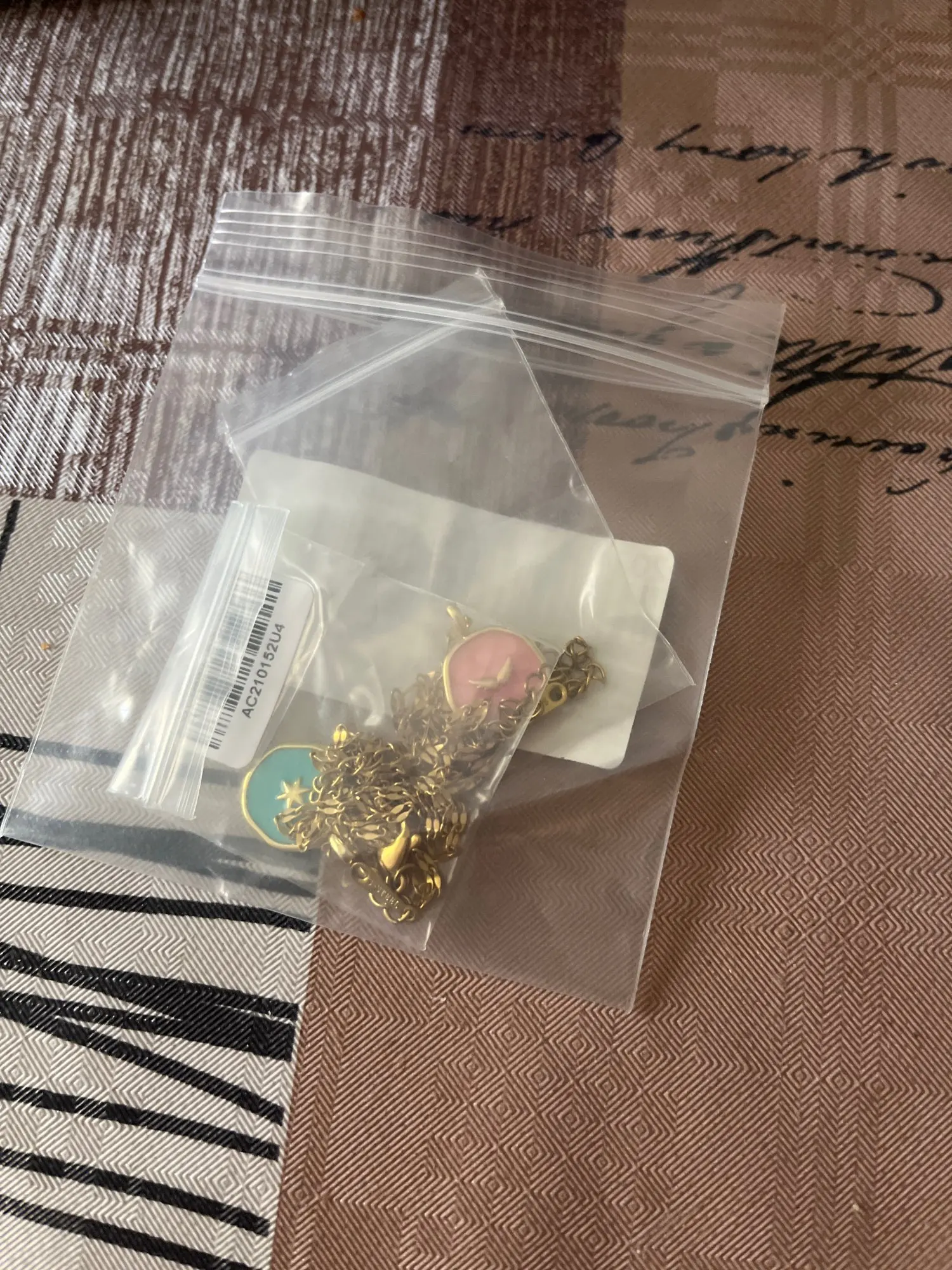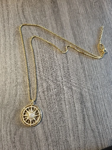 A treat! The chain is well yellowish and the pendant appears to be veneer. I hope it doesn’t blow🥺
